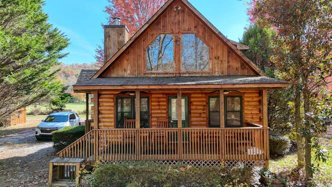 If you're looking for that private yet easily accessible cabin on a creek, this is it! It is perfectly situated above a large chattering creek that can be seen and heard while relaxing or dining on the porch. The picturesque stairway down through the tree canopy will take you to a picnic table, bench and firepit right beside the creek. Be sure to take your fishing pole because you're sure to see a rainbow trout or two on the 120 ft of shoreline right on the property. Perfect water playground for children of all ages. Inside the cabin, you’ll find a bedroom with a king bed, a bedroom with 2 twin beds and a single sleeper sofa in the living room. This offers plenty of room for 5 (or 6 if you don't mind sleeping on a couch). There are 2 full bathrooms. The living room has a roku tv and a DVD player with a large selection of DVDs. Both bedrooms have a tv and DVD player. Very good cell service over the entire property. The kitchen, dining area and living room are all openly connected so that all can be together. It's truly an amazing place!