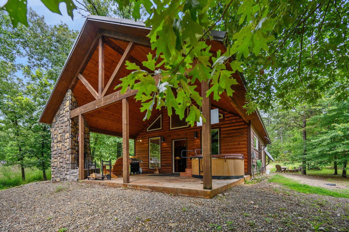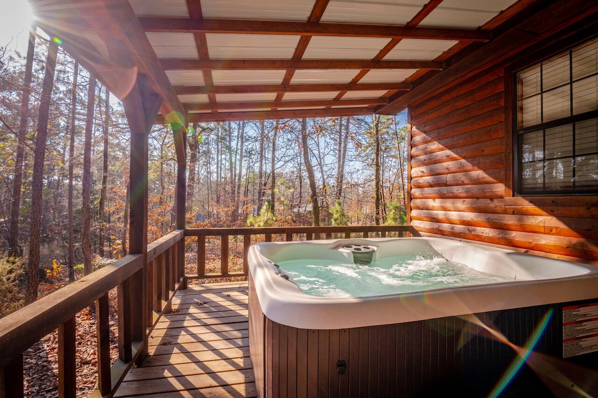 - Private Hot Tub: Soak under the stars in the spacious hot tub, surrounded by trees and fresh Ouachita National Forest air!