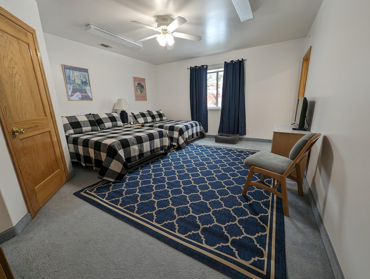 Lodge is open and roomy with several sitting areas to accommodate separate activities among the guests. Two different fully equipped lodgings for more privacy. All lodgings have amazing views with each lodging having its own deck and/or patio for enjoying outdoor seating.