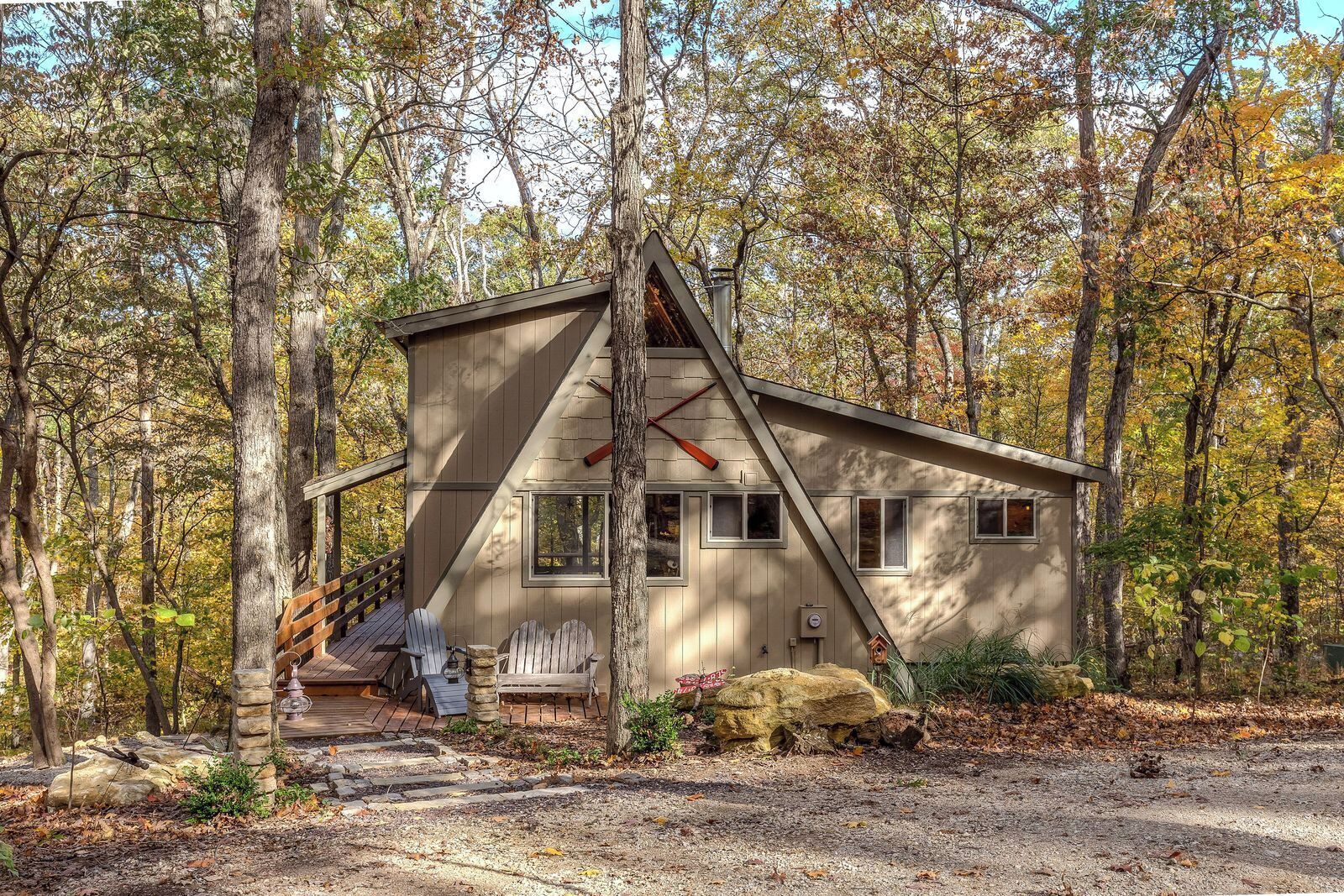Welcome to Happy Stay Chalet! If you’re seeking a break in nature, book this cozy 'A-Frame Chalet' getaway in the Innsbrook Resort. Take your pick of outdoor activities — this 2-bed, 2-bath Wright City vacation rental grants you access to beaches, hiking trails, golfing, and more! For a low-key adventure, launch a kayak from the dock and go for a spin around Lake Arlberg. Afterward, unplug and allow for family time with an al fresco dinner on the grill and s'mores on the fire pit for dessert.