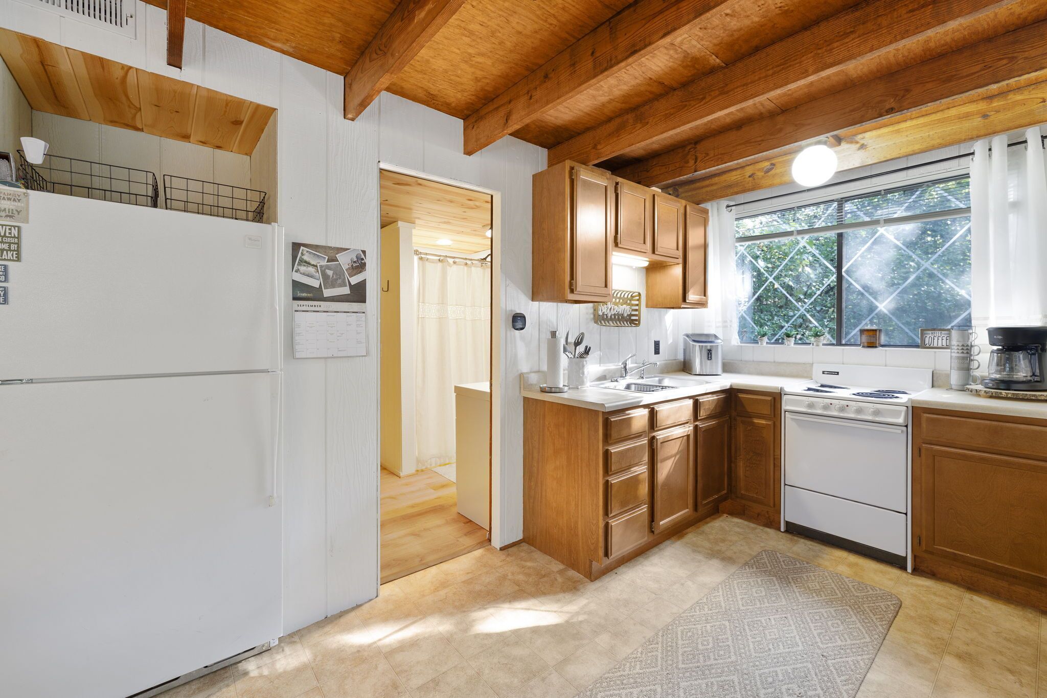 KITCHEN: Dishwasher, refrigerator, stove/oven, microwave, toaster, drip coffee maker, Keurig latte maker, slow cooker, cooking basics, dishware & flatware, trash bags & paper towels