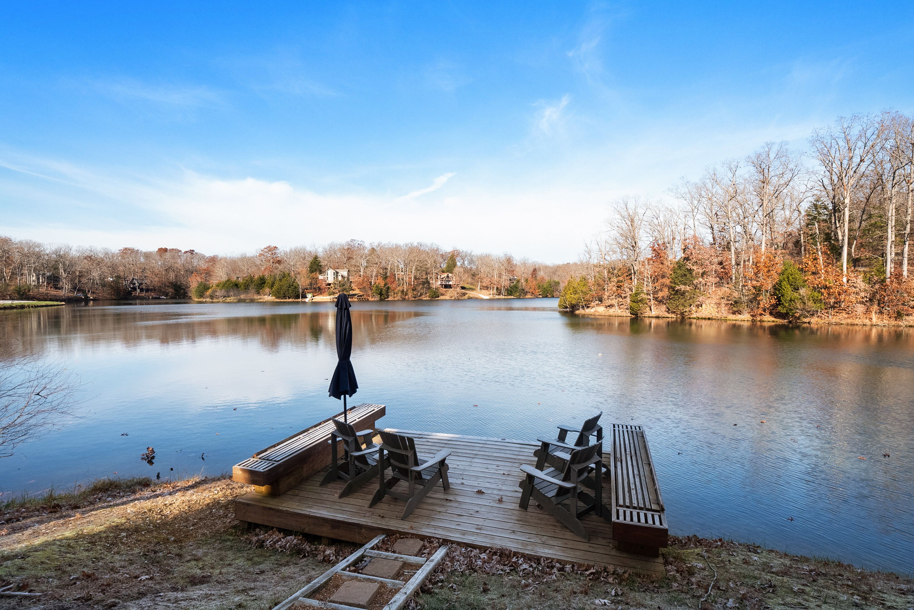 - "Wonderful floor plan with floor to ceiling windows overlooking 25 acre lake. All the water toys to keep kids busy. Guaranteed small bluegill fishing off dock."