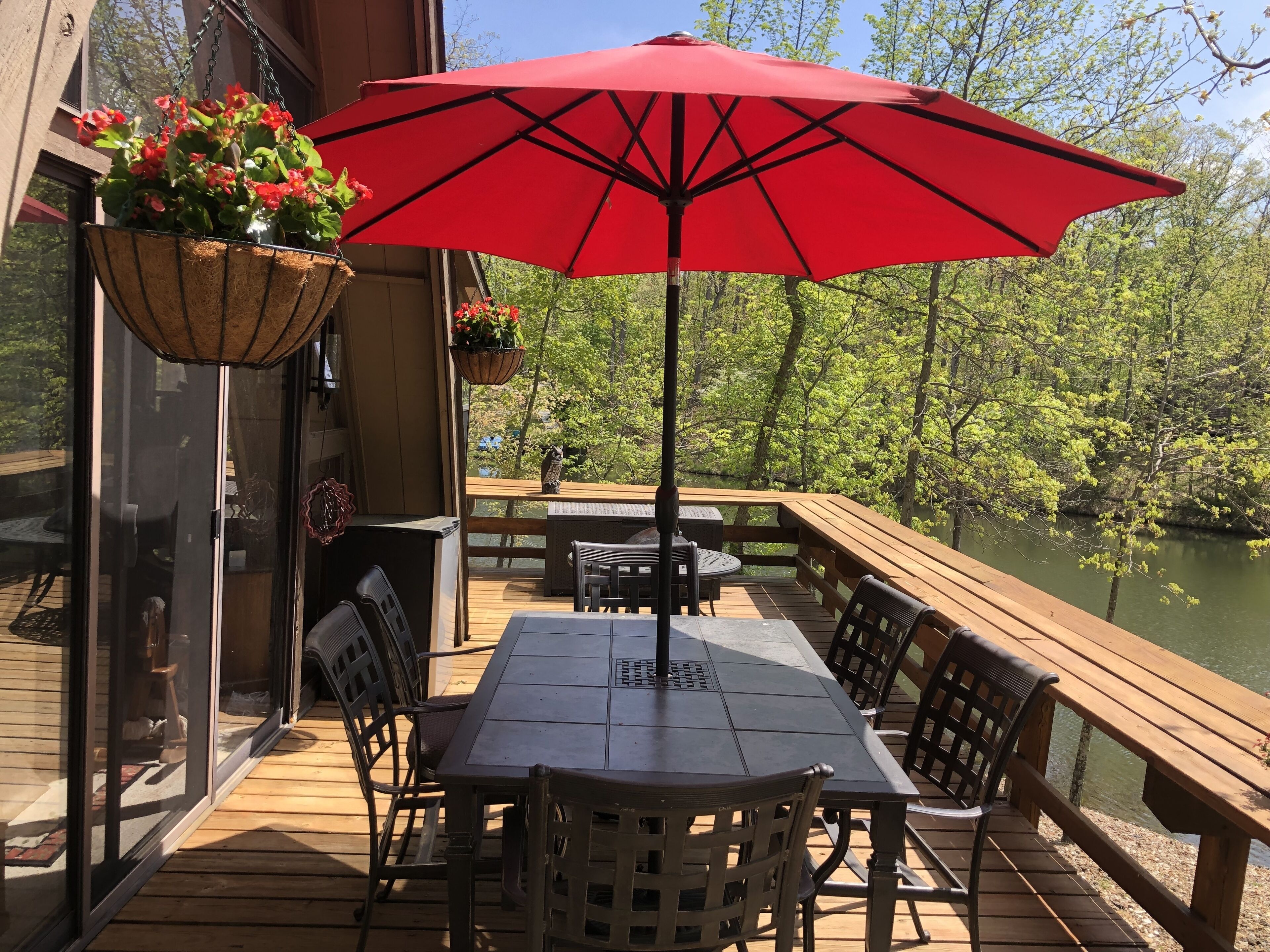 - Large deck with table/umbrella and additional seating