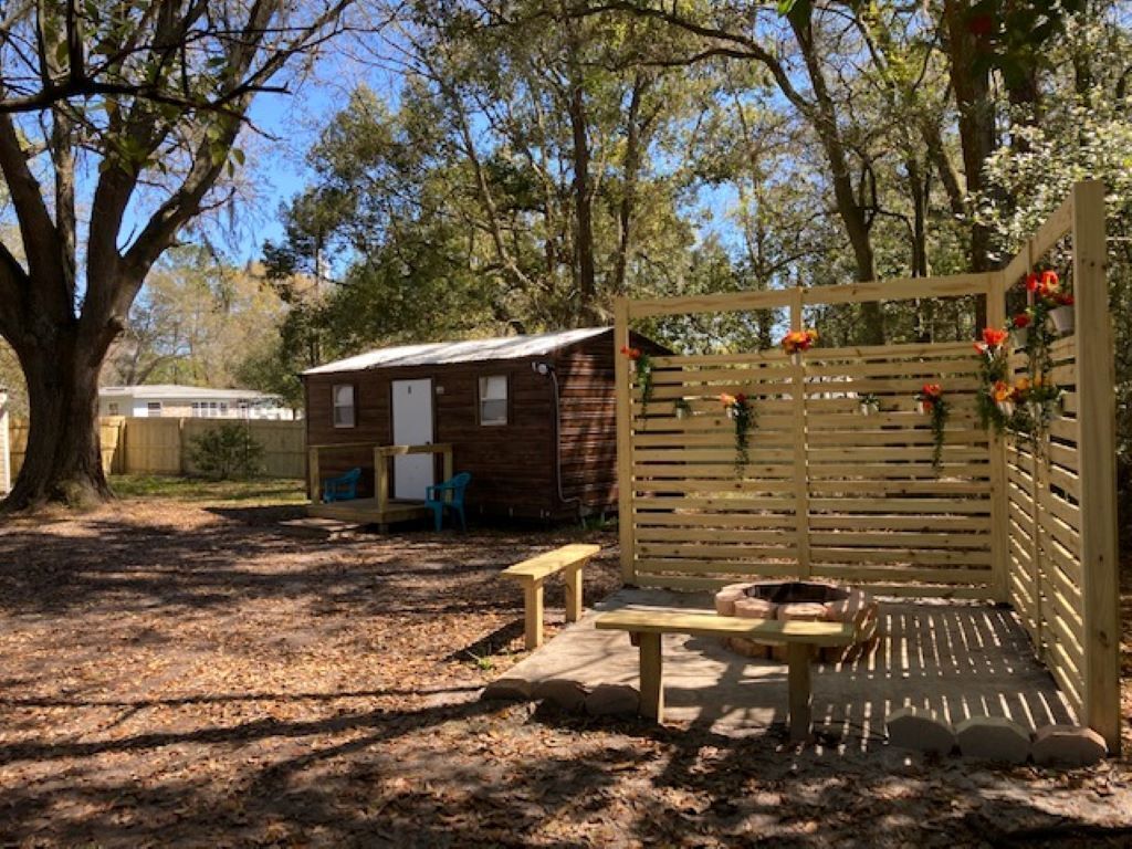 Nestled behind a private home in Jacksonville, this delightful cabin is a detached bedroom and bath with a private entrance. Perfect for guests who need a safe and cozy place to shower and sleep. The patio, outdoor bbq pit, and fire pit are common areas that are shared with the owner. Its minimal and perfect for one but if yoy dont mind the tight fit, we've installed a trundle bed if needed for a second guest. Whether you're looking to relax in nature or explore the local attractions, our place is the ideal home base for your adventures. We think our place will help you experience everything Jacksonville has to offer. Ask about special discounts for stays longer than 30 days