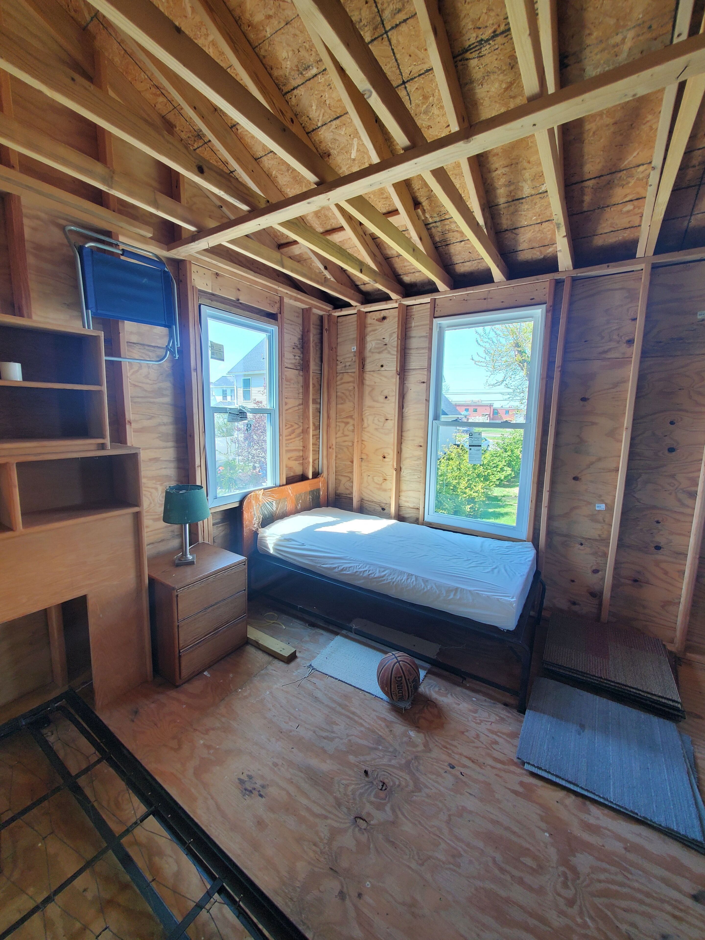 it's an unfinished cabin for an adventurous person