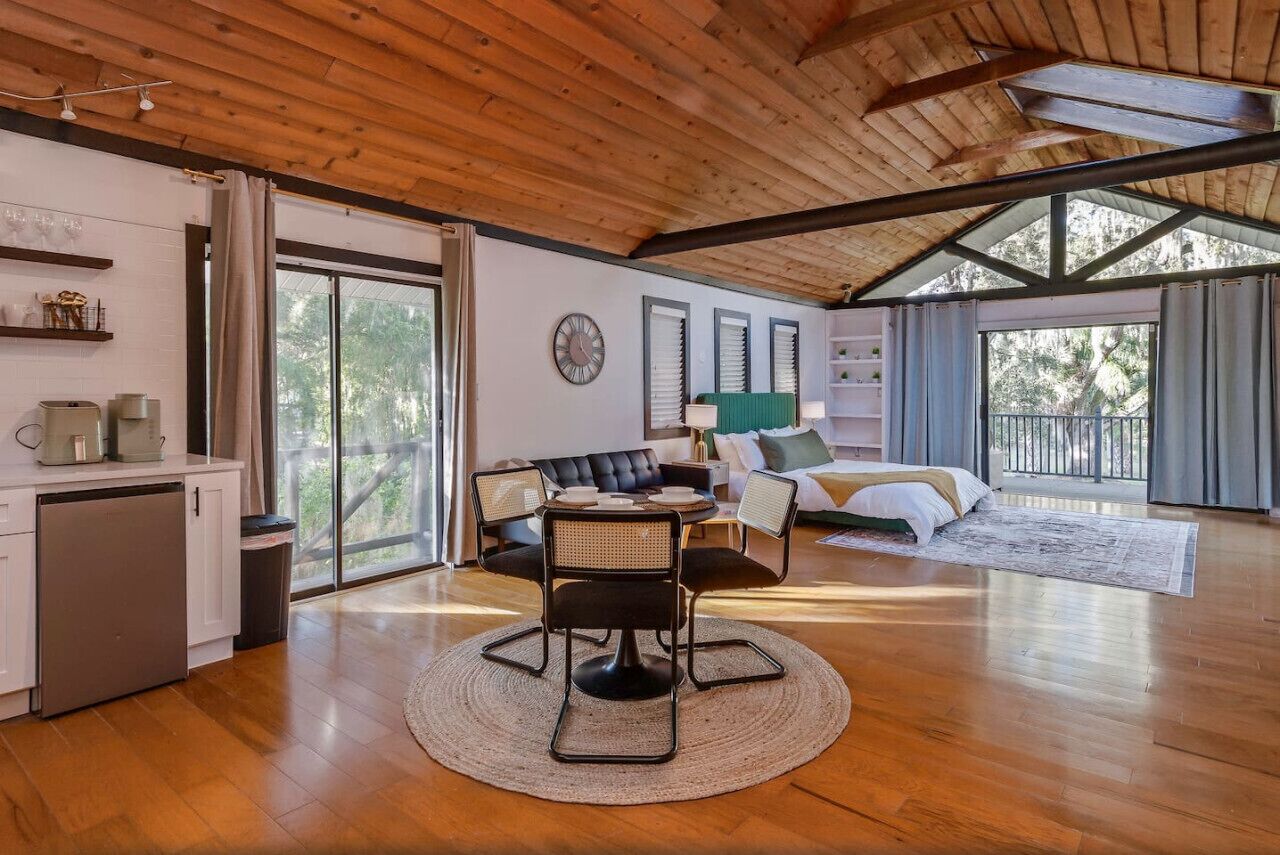 Whether you're seeking a quiet retreat or eager to discover all that Central Florida has to offer, this romantic Cabin-Studio is your ideal place! Enjoy your own balcony with a hammock, grill, fun outdoor seating, and an amazing view!