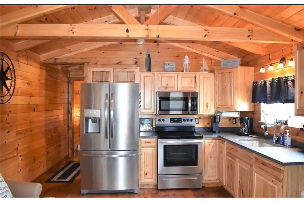 - "Very nice place. Super clean and quiet. 30 second walk to the lake." - "Great" - "Property was as described. All the items needed for cooking were available as well as coffee for brewing in the kuerig" - "Na" - "Very nice, clean and comfortable." - "Great little cabin. The electronic key was not working so Bob provided us with a key. We had a relaxing stay." - "We had an awesome time. The cabin was clean and beautiful. It had everything! We especially enjoyed the full kitchen and the front porch. It felt so much like home. We loved it! We highly recommend this cabin."