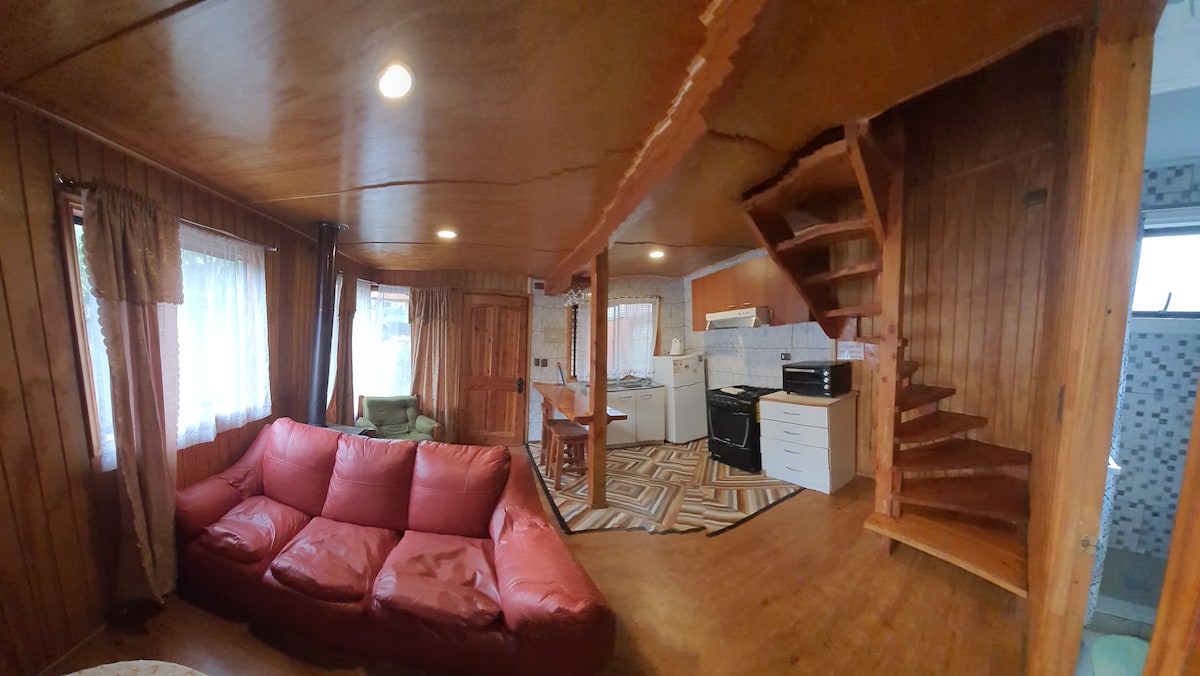 Take a break and relax in this nice and cozy independent and equipped cabin, it is located in the regional sector, safe and quiet neighborhood, in its surroundings you have two supermarkets, pharmacies, restaurants, fast and homemade food, pastry, gyms, laundry and regional hospital. An 8-minute drive to downtown Valdivia, excellent transportation.