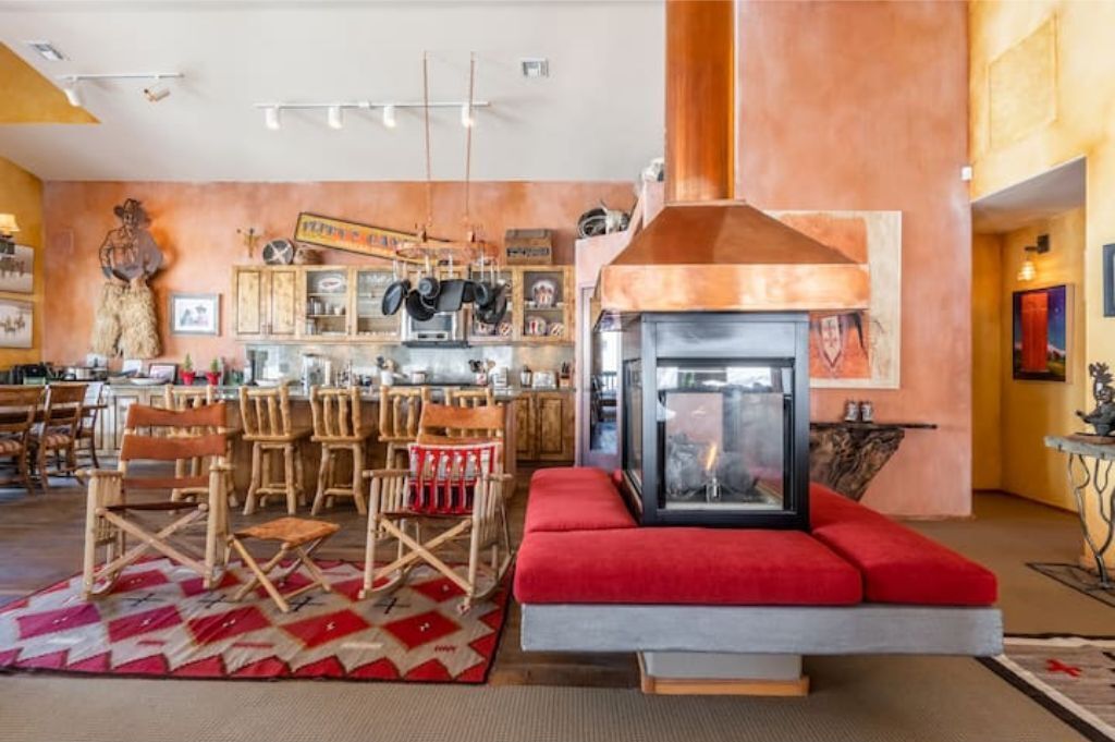 Enjoy a king-size bed in the primary bedroom, a queen in the second, and a sleeper sofa for extra guests. Unwind by the wood-burning fireplace or watch shows on the 86-inch smart TV with high-speed internet.