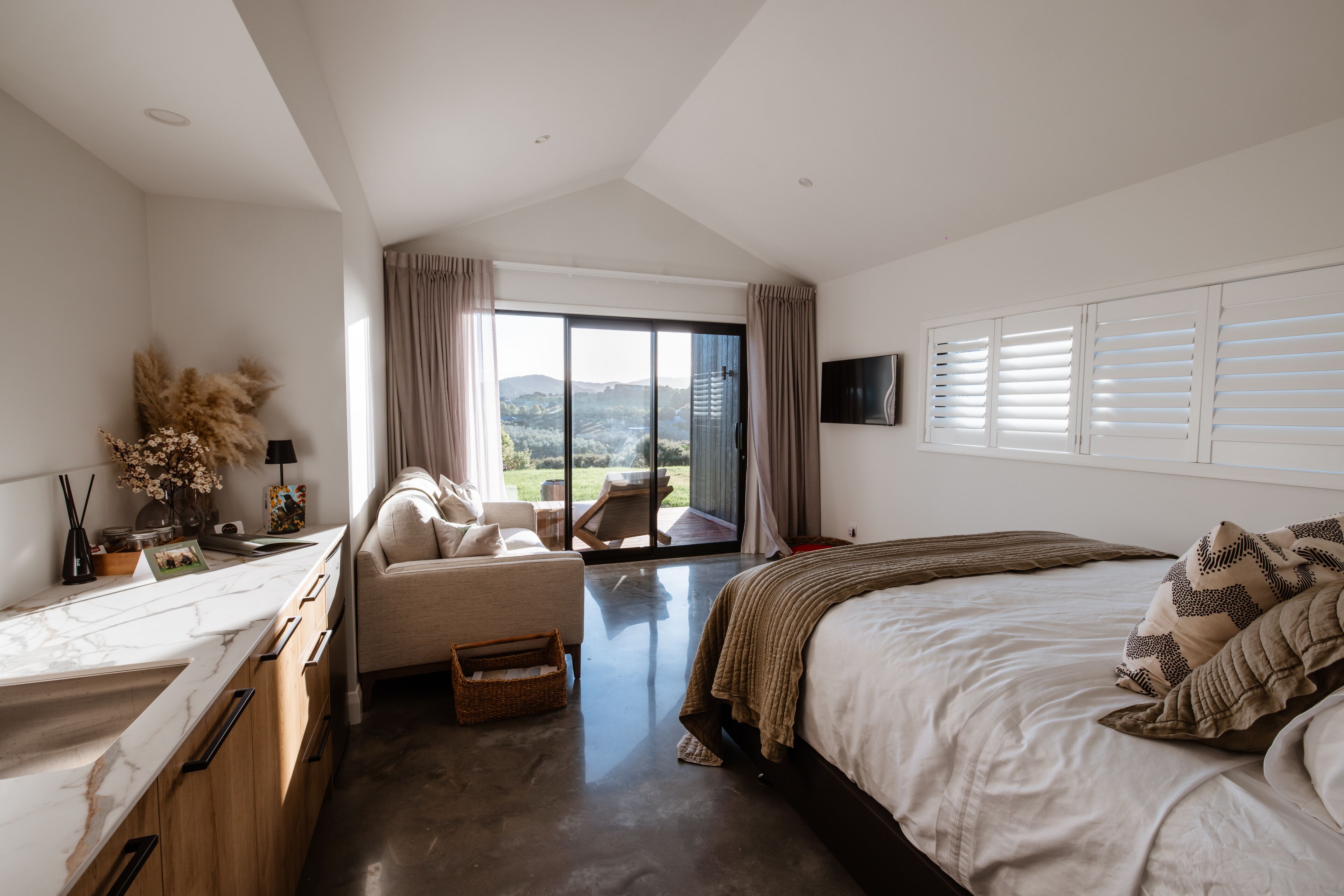 Located a convenient location near vineyards and olive groves, just a 5-10 minute drive from both Mangawhai Heads and Lang's Beach.