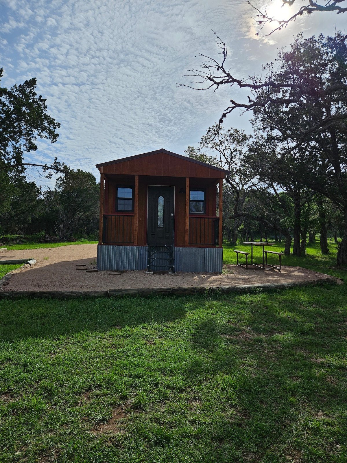 Rock cabin privately situated on Comanche Creek with 80+ acres available to roam freely. Tucked away among hertiage live oaks and towering cedar elm trees is a 2 bedroom (King & Queen Beds respectively), 1 bath cabin (with walk-in shower) just 25 mins to Horseshoe Bay, 45 mins to Fredericksburg and about an hour from Austin. The cabin comfortably sleeps 4 and offers a full size kitchen. Enjoy the peace of being surrounded by nature among wild turkeys and grazing deer. Feel free to hike around the acreage or use the buggy to cruise about. Head into town for dinner or grill out on the patio, there’s no better way to kick your heels up and recharge. Exceptional stargazing!