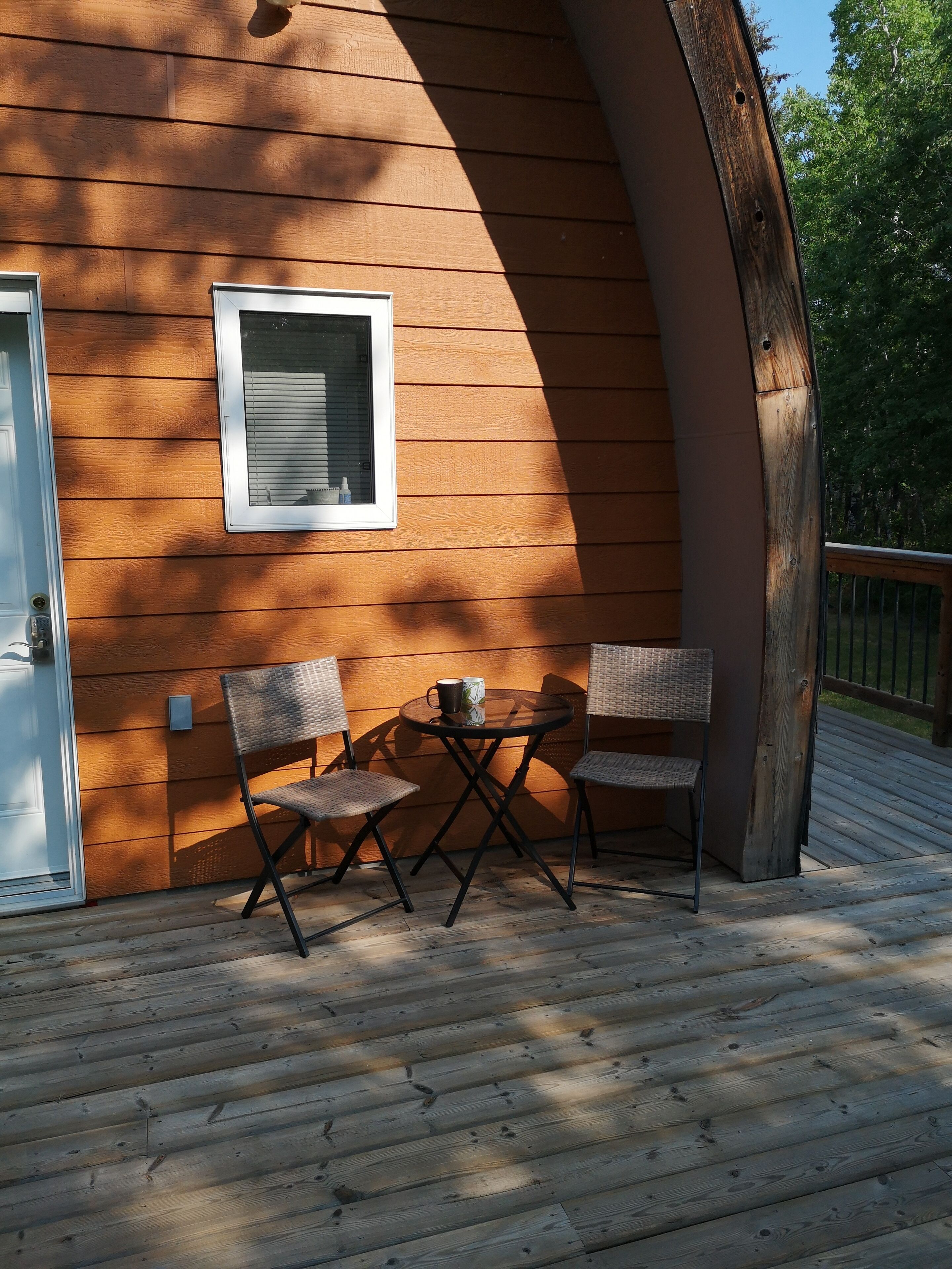 Outside, a large deck awaits, inviting you to savour your morning coffee. We have added a large propane fire table to enjoy with or without fire bans. Fire up the BBQ for an outdoor feast, or gather around the fire pit for marshmallow roasting & laughter.