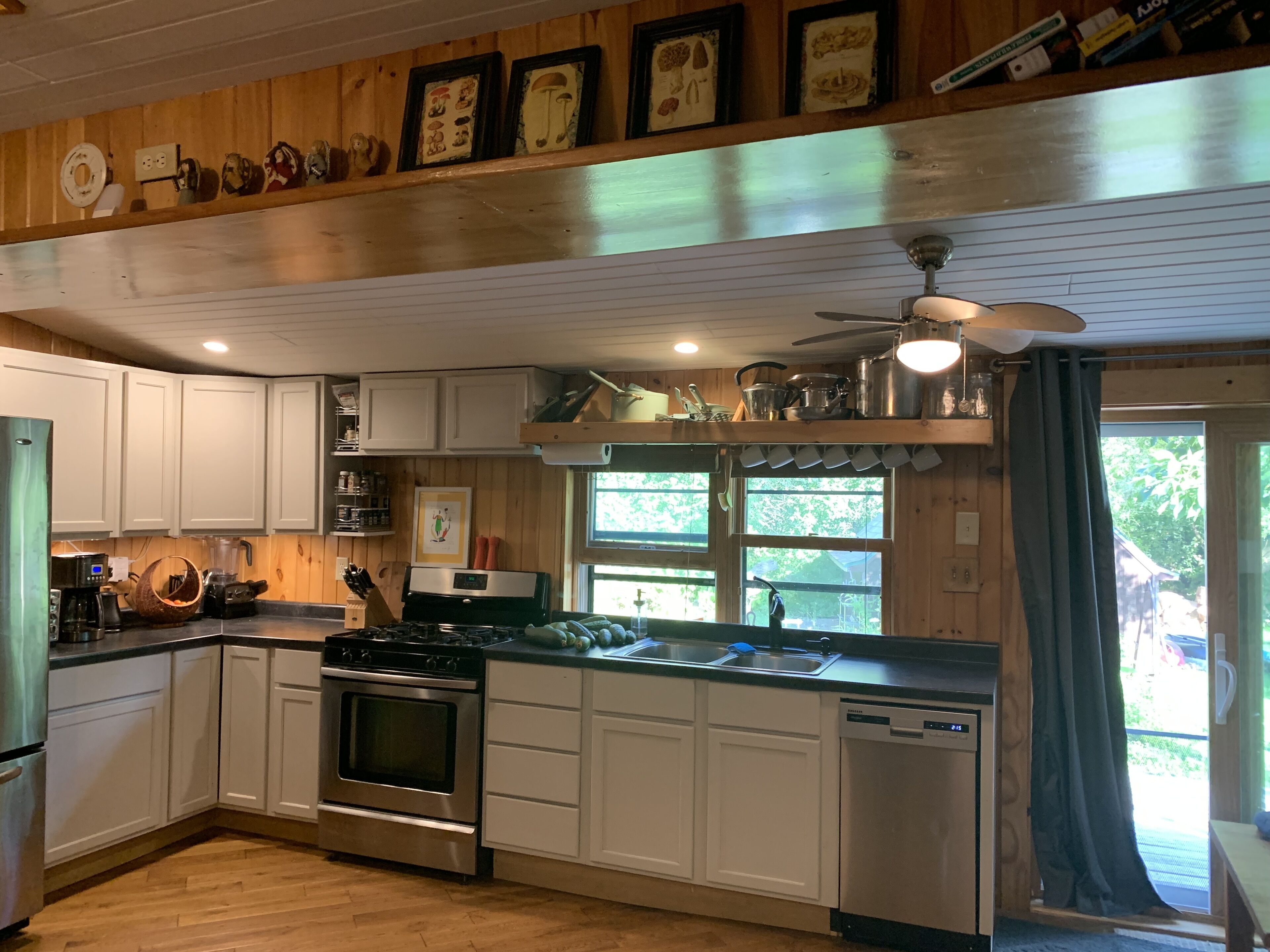 Escape to the enchanting Kringle Cabin, where every corner whispers tales of comfort and charm. This unique A-frame sanctuary has undergone a complete renovation, boasting new solid hickory floors, cabinets, tongue and groove pine wallboard, and a cozy gas fire stove. Step inside and discover a haven of modern elegance fused with rustic allure.
