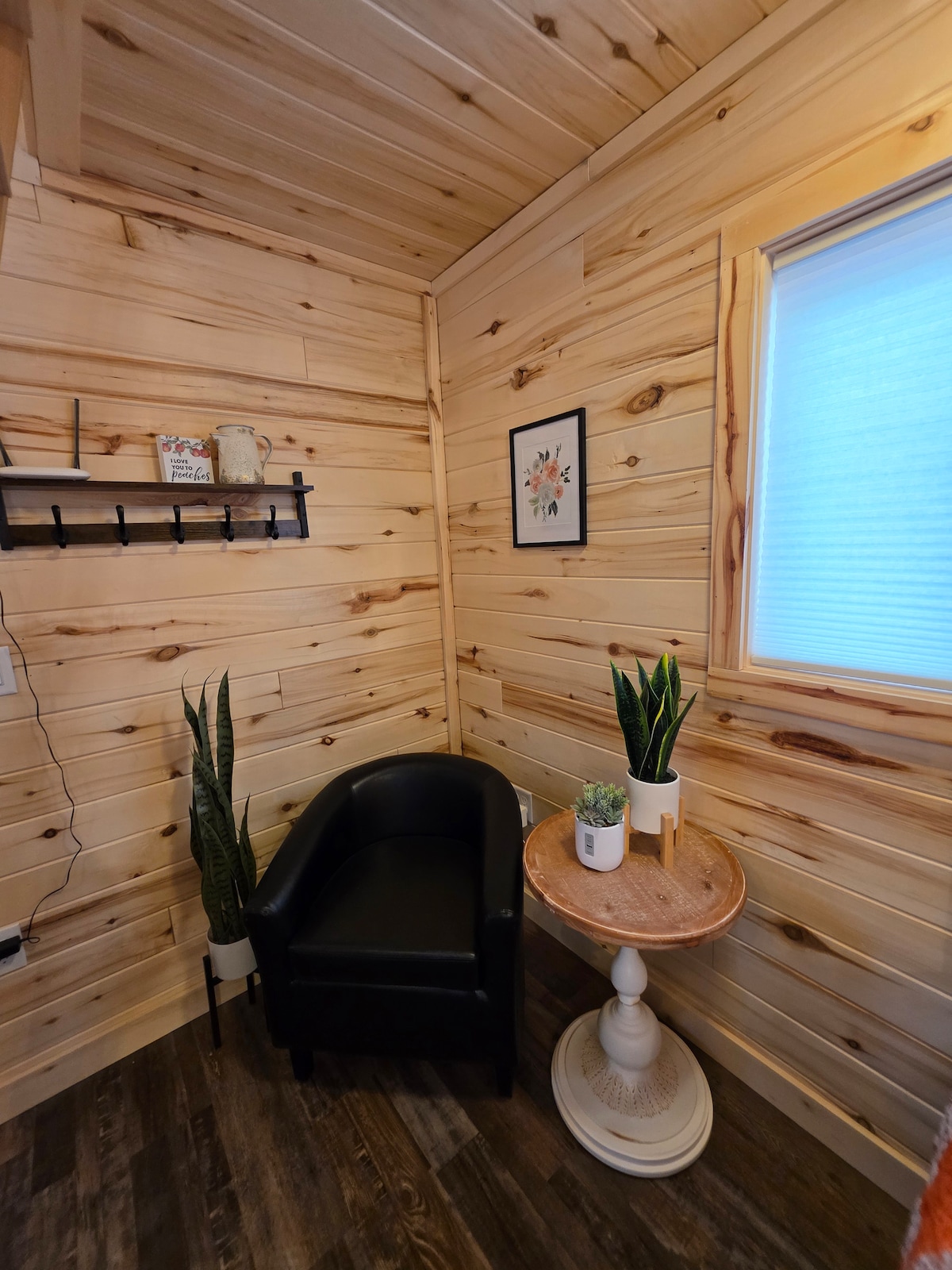 Come stay in this adorable studio cabin located only 8.5 miles east of Monticello, Utah. Experience the calm of the rural environment. The cabin has a queen size bed and a full sized futon. A small kitchenette includes a compact fridge, microwave, and basic dishes. It also has an electric kettle for boiling water. Private bathroom with custom tile work in the shower. The wall heater keeps you warm in the winter and a portable air conditioning keeps you cool in summer heat months.