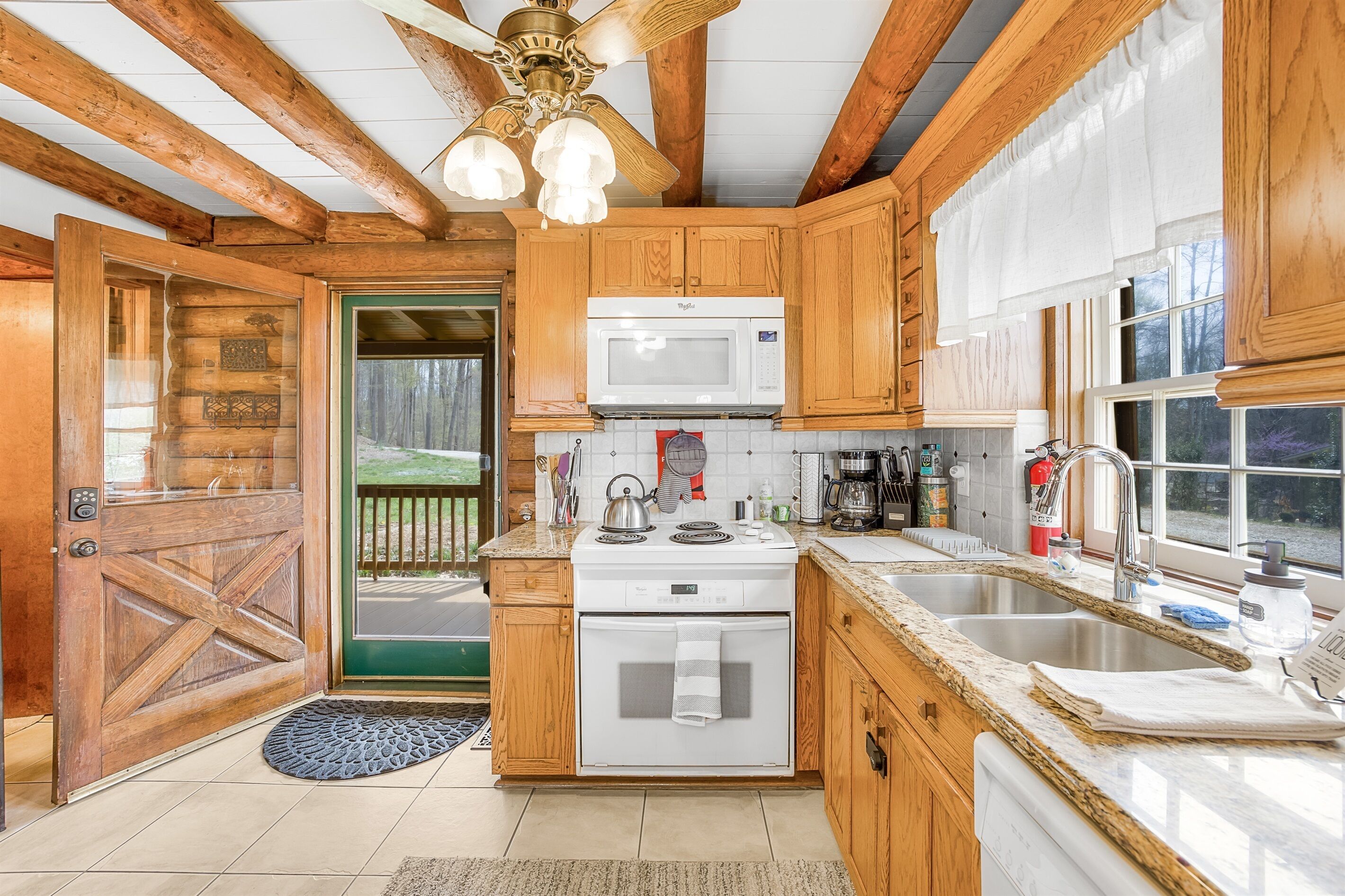 This 1990 cabin was completely renovated in the spring of 2018. The brand new kitchen is equipped with stainless steel appliances, granite counter tops and all the cookware needed for a fabulous meal.