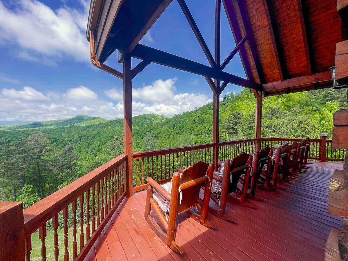 This large but cozy cabin has miles of Mountain Views, 8 bedrooms, spacious common areas, and entertaining amenities. Its expansive outdoor deck is a dream for outdoor living on the mountaintop. Sitting on prime and exclusive real estate, the massive lodge is a place you want to call home even if it’s just for a few days! Sleeps 22