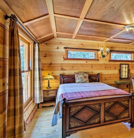 Escape to our cozy 1-bed, 1-bath cabin surrounded by pines.