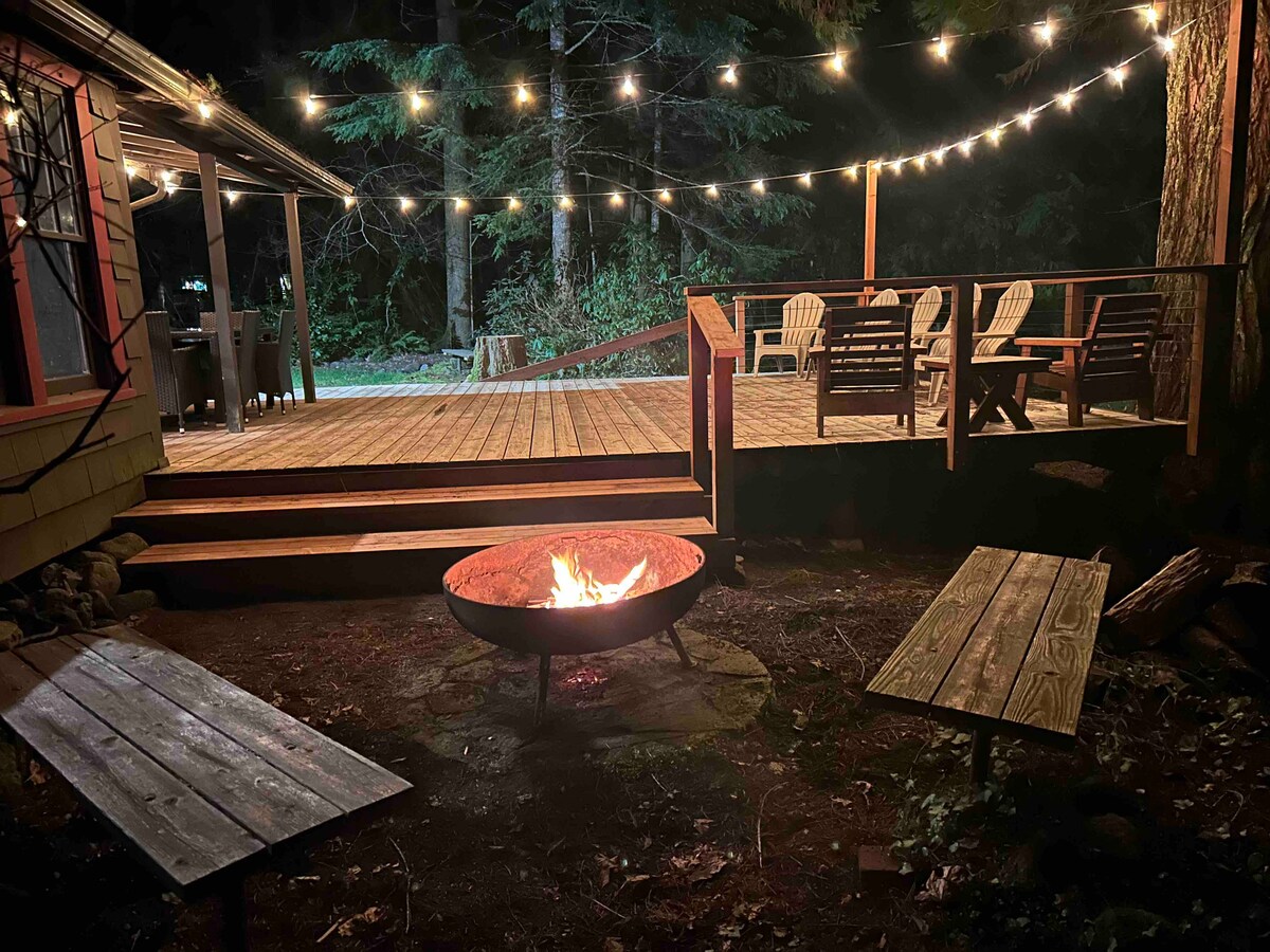 The back deck is the perfect place to read a book or just have dinner. There is a fire pit located off to the side of the deck that you are welcome to use provided that there is no burn ban in effect.