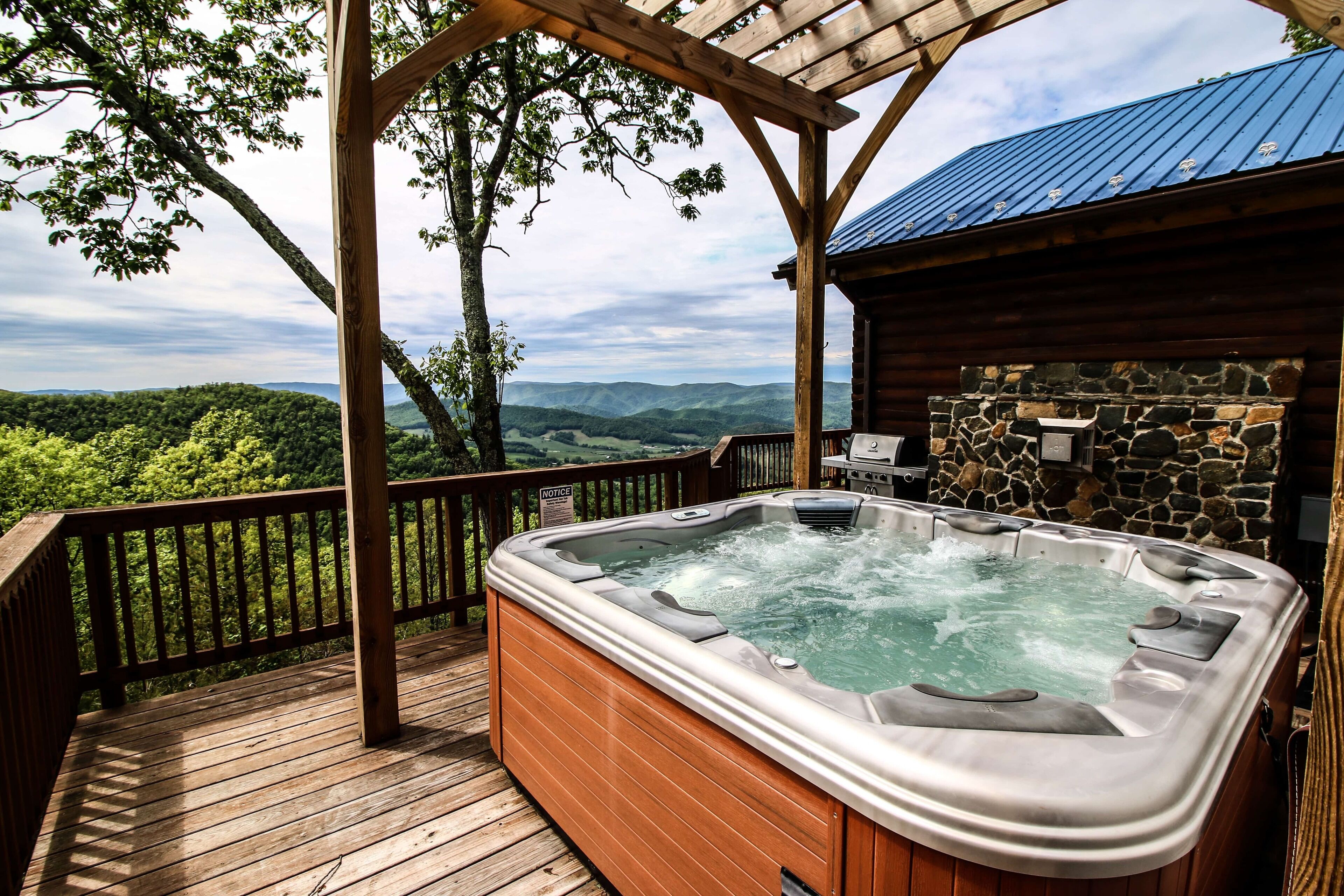 Nested in the mountains you can forget your worries in this spacious deck with long range views. Enjoy the beautiful views while soaking and relaxing in the hot tub.