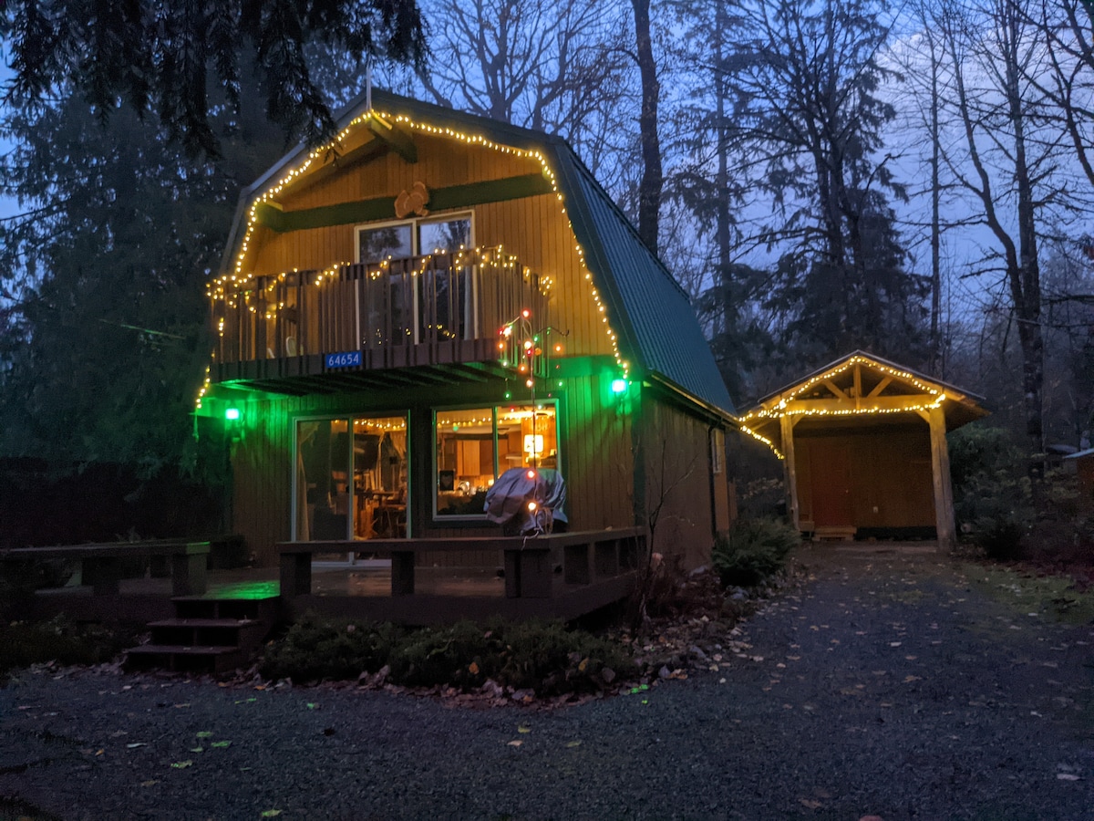 Custom A-frame cabin on an exceptional Sauk River waterfront lot. Great river and territorial views. Fireplace will welcome guests on cold nights and AC on hot days. Enjoy the river front deck, native landscape, skylights, fire pit and view through the striking vaulted glass wall. We hope you enjoy our little slice of heaven. Tulalip, Quil Ceda Creek and Angel of the Winds Casinos all under an hour drive. Bellingham, Mt Baker, Skagit Valley & North Cascades National Park all within 2 hour drive.