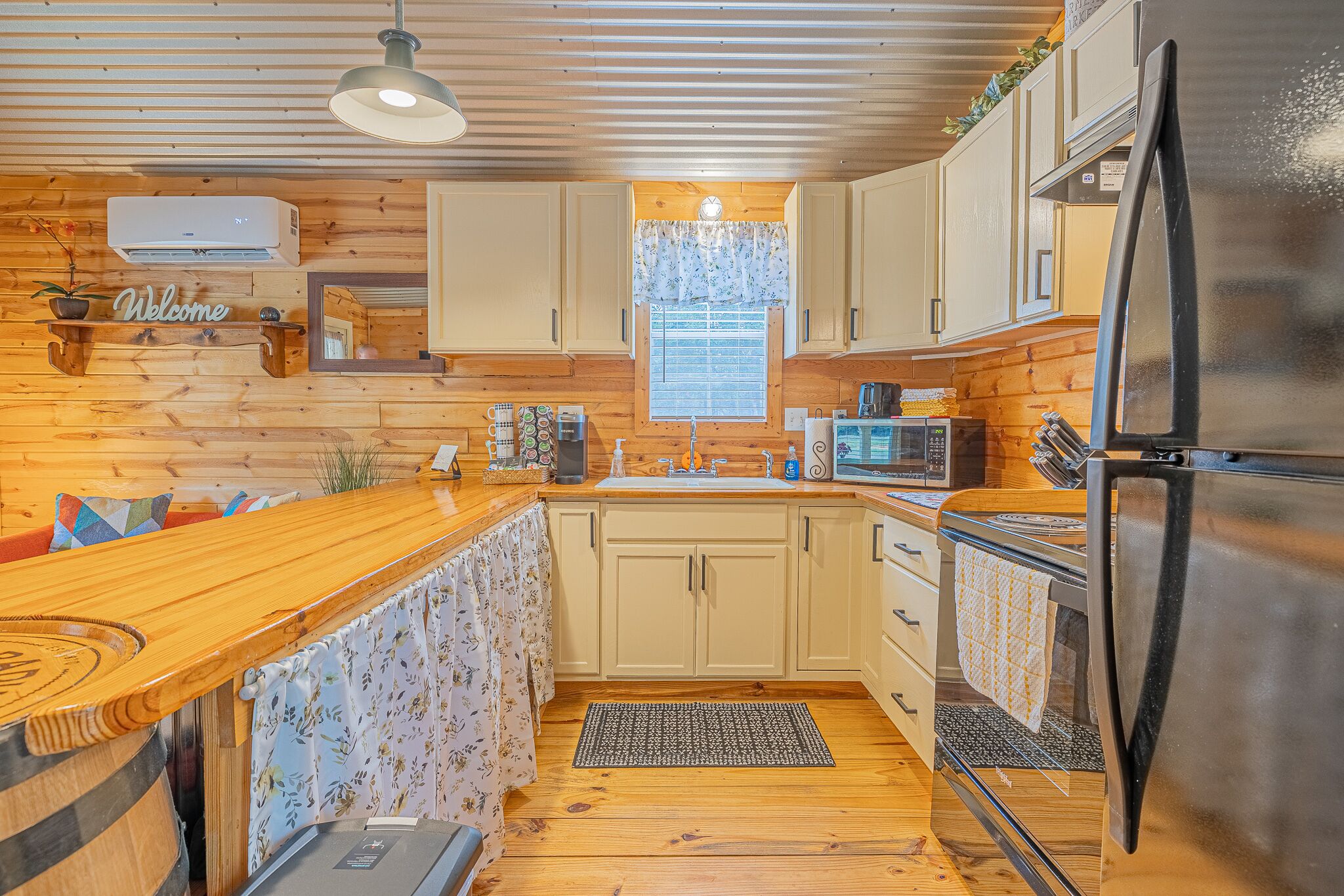 Inside, you’ll find a rustic pine interior and corrugated metal ceiling throughout. Brand new mini-split AC/Heat units in both the living room and bedroom were recently installed. High-speed internet/wifi is provided by Starlink (SpaceX) with speeds up to 50Mb bandwidth (unheard of speeds in the country!). There is also a smoke and carbon monoxide detector and a fire extinguisher.