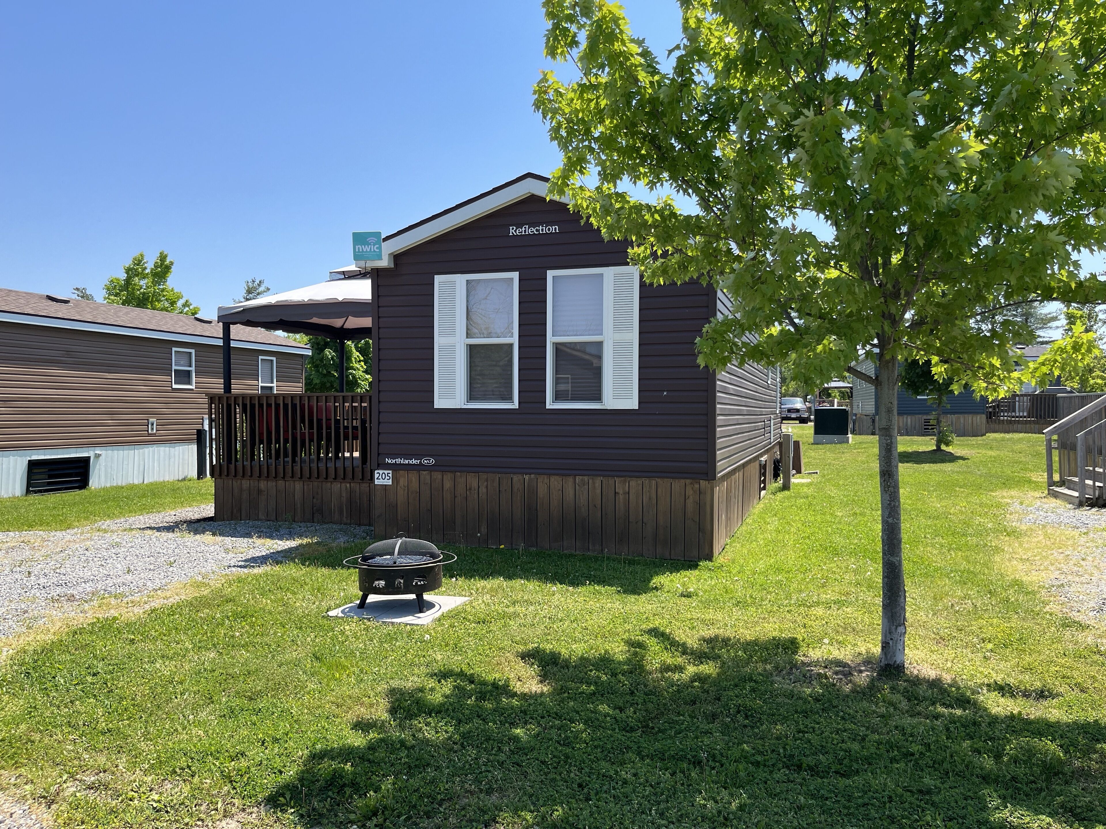 Its a very modern cottage/trailer in the town of niagara on the lake. 2015 old with a brand new roof top on the deck. With a Fire pit great for marshmellowing at night.