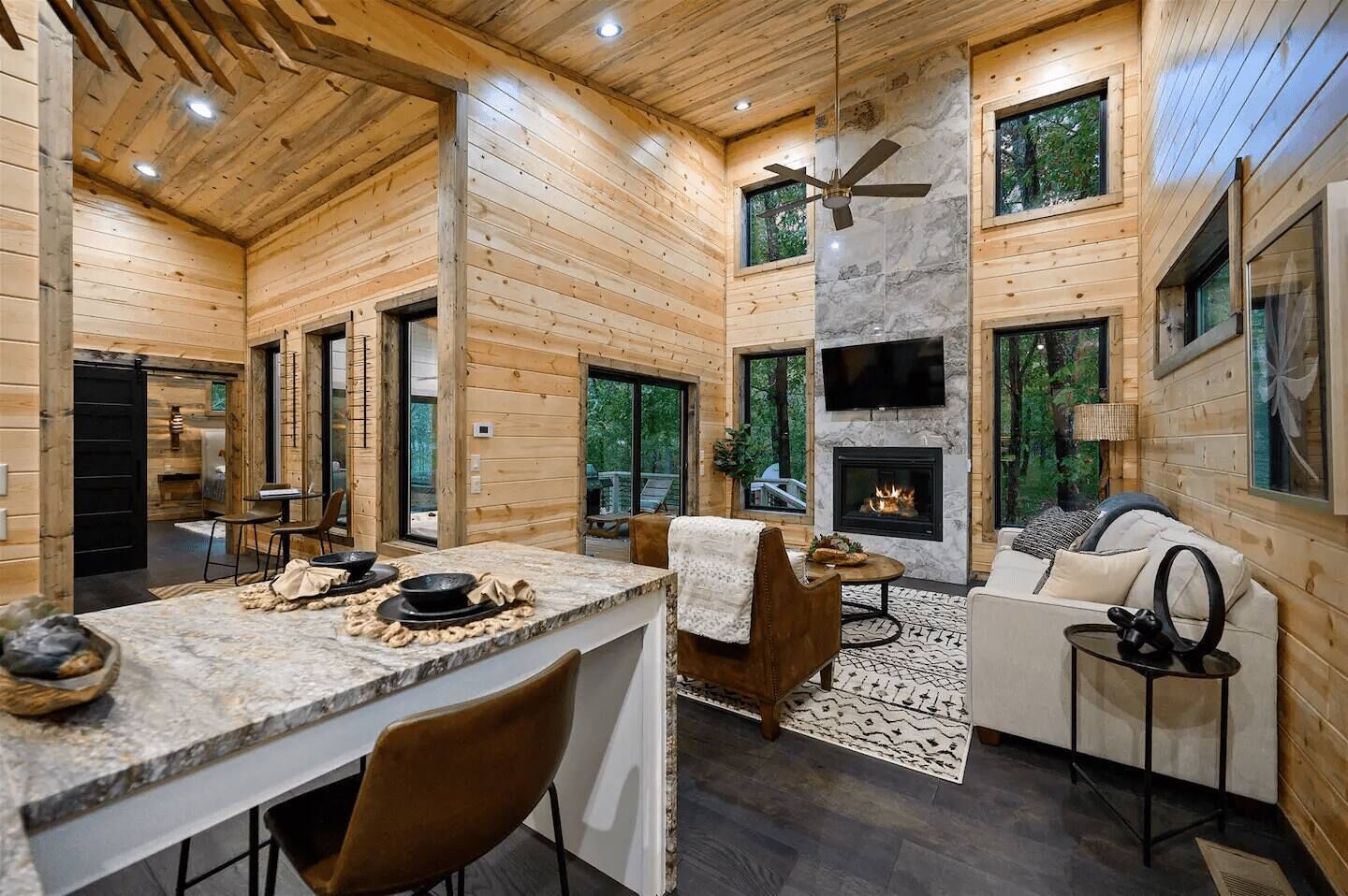 ☆ Open-concept living area w/ indoor fireplace + large flat-screen HDTV