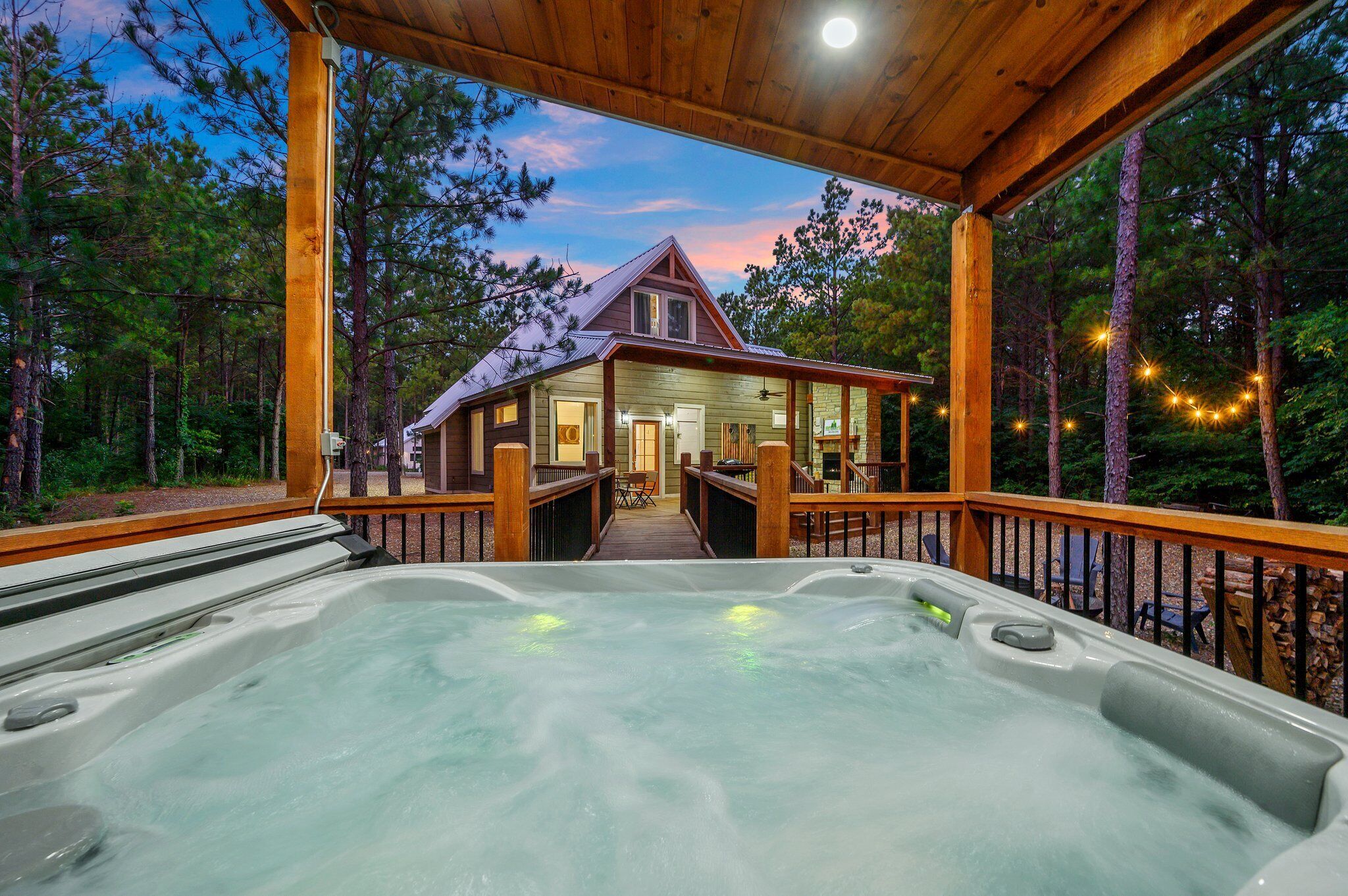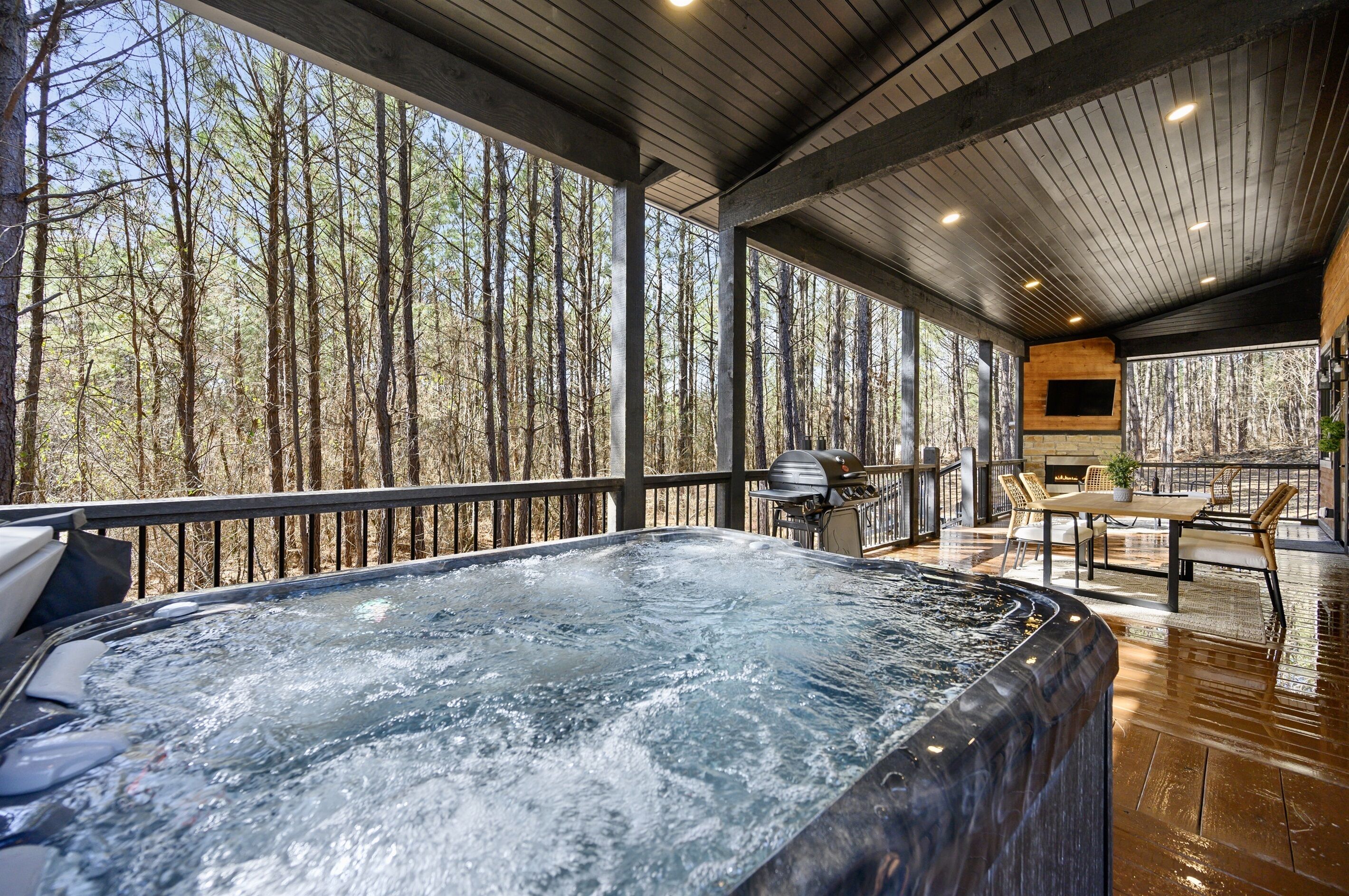 When you're staying in Broken Bow, you'll want to take advantage of the natural beauty surrounding you at every opportunity and the Fade Away has one of the most peaceful views of the pine trees in the area. Enjoy meals in the outdoor dining area or roast s'mores/share stories around the outdoor fire pit. For the ultimate indulgence, take a nice bottle of wine down to the hot tub. This is outdoor living at its best.