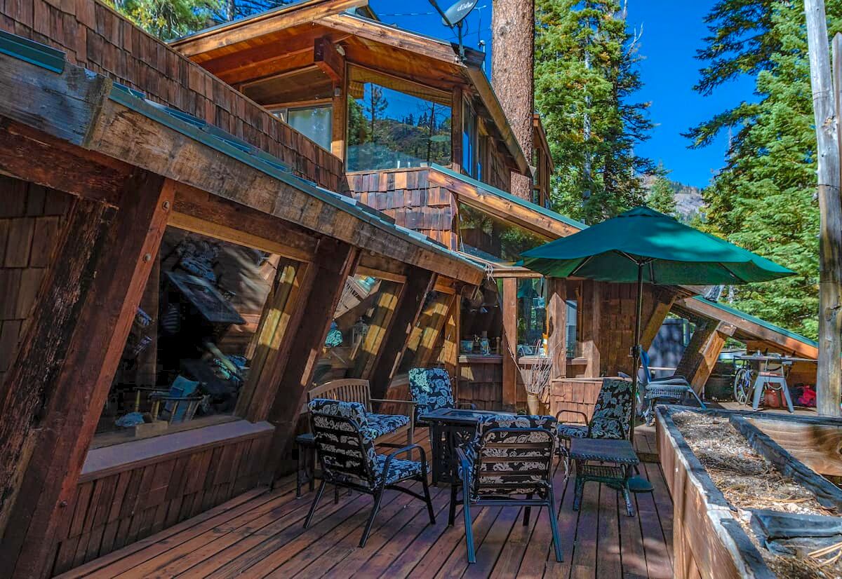 The backyard connects to private trailhead that offers hiking and mountain biking throughout Olympic Valley and Alpine Meadows.