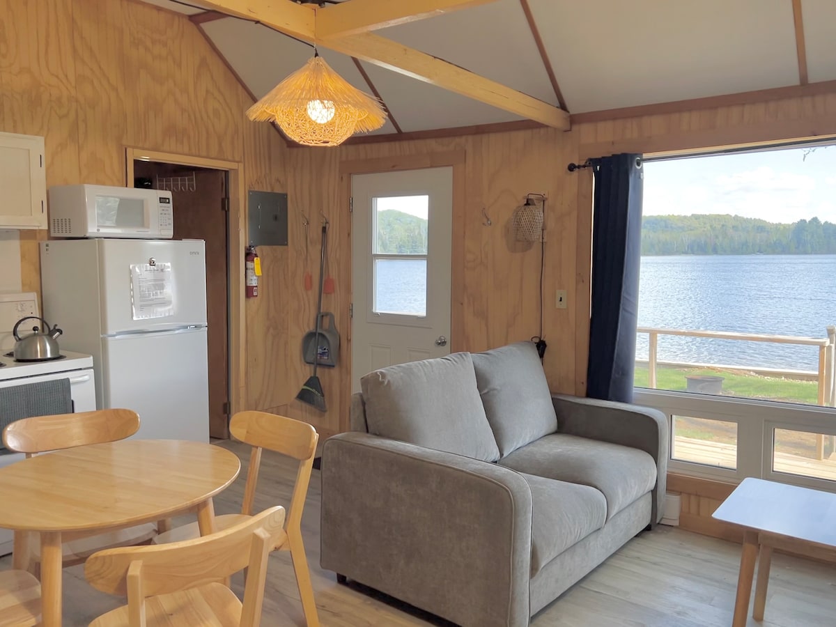 - "Really nice spot and activities on site. Cottage was a little underwhelming but comfortable enough. No tv in cabin but wifi worked well. Really nice view and dock is just a few meters from cabin." - "It was absolutely gorgeous and so fun the owner was very friendly cottages whete so beautiful scenery was breathtaking not many mosquitos i woild definitely go again" - "These cottages are wonderful, beautiful and peaceful. Perfect for a weekend get away from the city. I read the reviews and I don’t know how people can complain about no TV when your surrounded by such beauty, also only having 2 toilet rolls, this is a family run business not a chain hotel with unlimited supplies. Our only complaints are the stranded boat on the beach - it’s not safe for small children or dogs and just doesn’t look nice, there was also a stray nail on the deck I have to move. Also the main road is very close to the cottages so quite noisy and not great if you want to let your dog or children run free. Lastly, there was no warning about wild animals at night, they ate our food outside and if people leave their dog outside to sleep that wouldn’t be good at all ! "