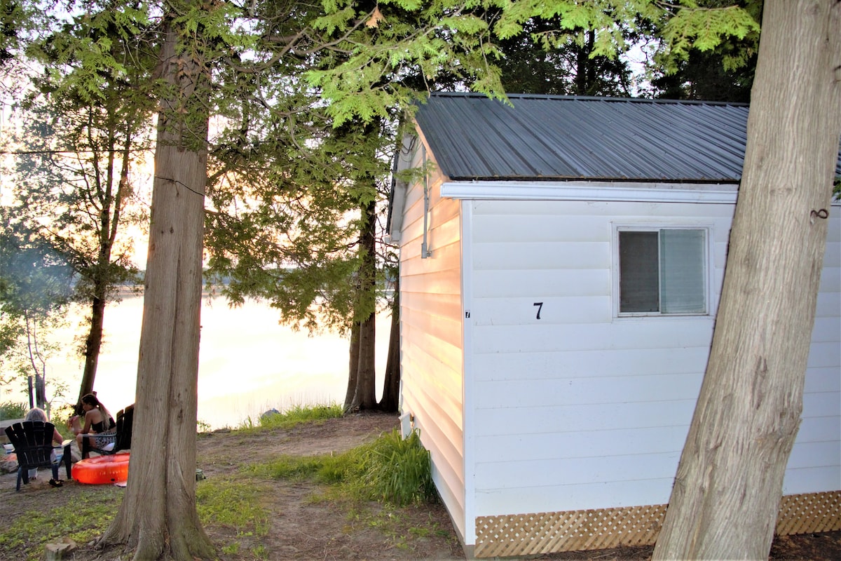 Our 8 waterfront cabins are situated comfortably along Sky Lake. Onsite we have fireplace, Private BBQ and deck for your enjoyment. This is a private property with Private Lake and access to water right at your doorsteps. Because of this Cabin being so close to water, ( 4 meters to the shore line) we are not permitted to have gray water service inside, as a result, we have central washrooms for your use, free hot shower and portable water supply if needed few short walk away. Please remember to also bring your own bedding, pillows and linens are not provided. If you are looking for a smart, quick and family friendly Ontario escape, then this cabin is perfect. Popular and well known destinations in the area are: