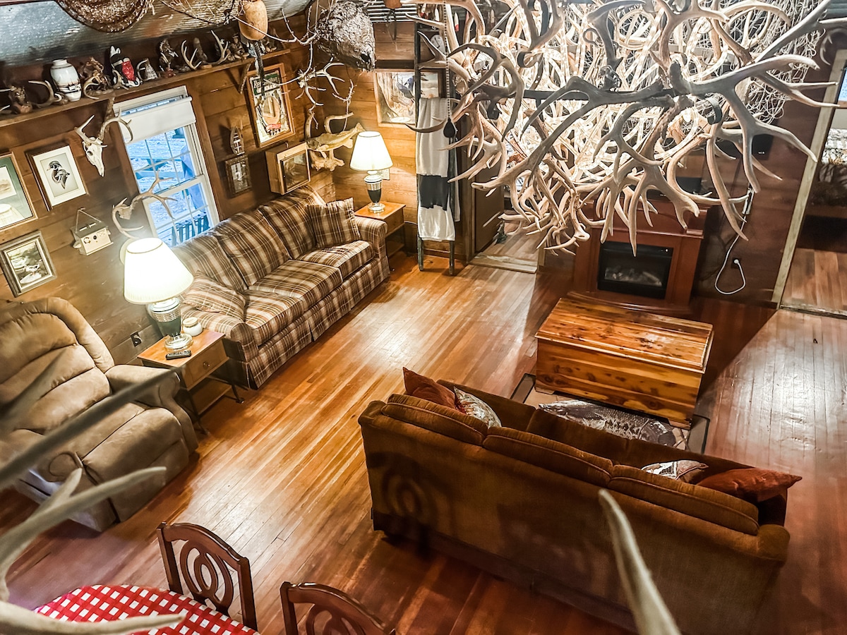 -The rustic charm that only a cabin with huge stone fireplaces and chimney can provide. And much more....