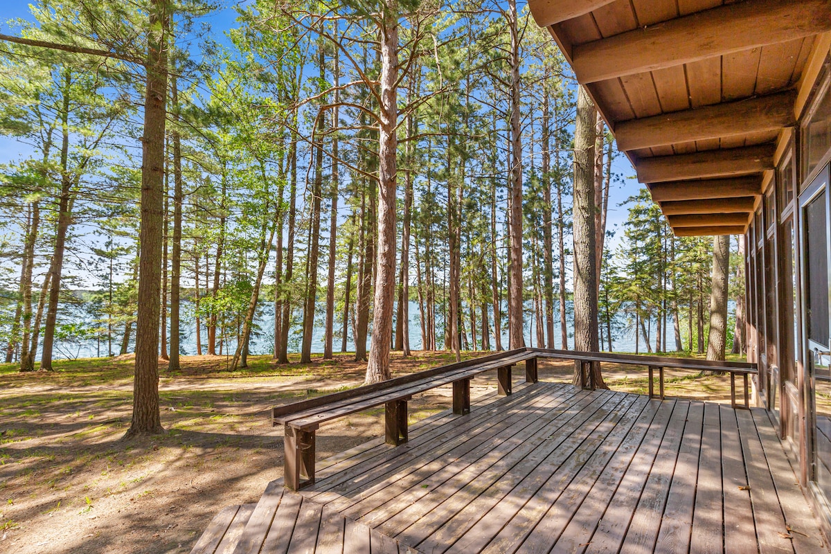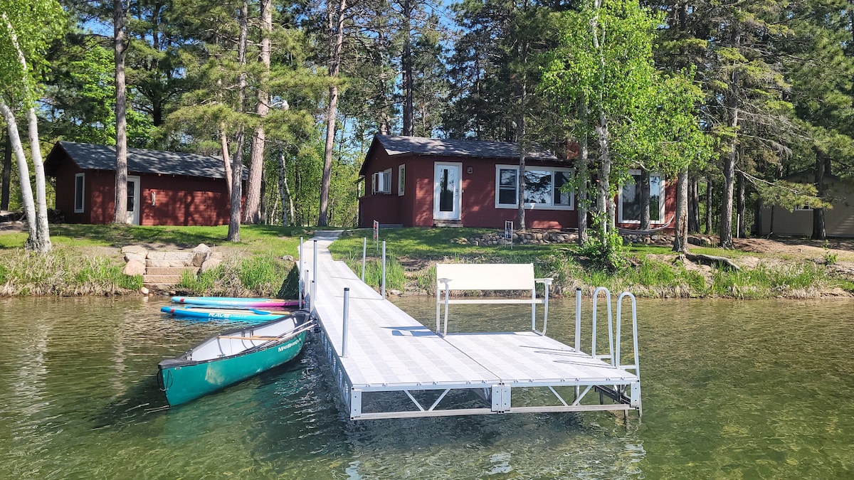 We can provide that, with a 2 bedroom cabin 10 feet from the shores of Big Sand Lake, Park Rapids, Minnesota. Big Sand is one of the areas premier fishing and recreational lakes. 1800 acre lake with 35-foot water clarity, hard pack sand bottom, gradual slope out, and no weeds!! Fantastic swimming off the end of the dock. The cabin is a rustic two bedroom with a large deck and lakeside fire pit. There is a double bed in one bedroom. The other bedroom has a bunk bed with full mattress on the bottom and twin on top. Beautiful setting among towering white and red pines, right on the water, with a fabulous fire pit overlooking a natural rocky shoreline. This cabin faces west for the best sunset views in Hubbard County.