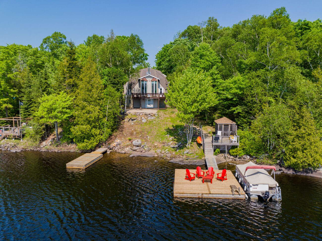 Unwind under the stars around the lakeside fire pit with Muskoka chairs—ideal for evening chats, marshmallows, and Milky Way views.