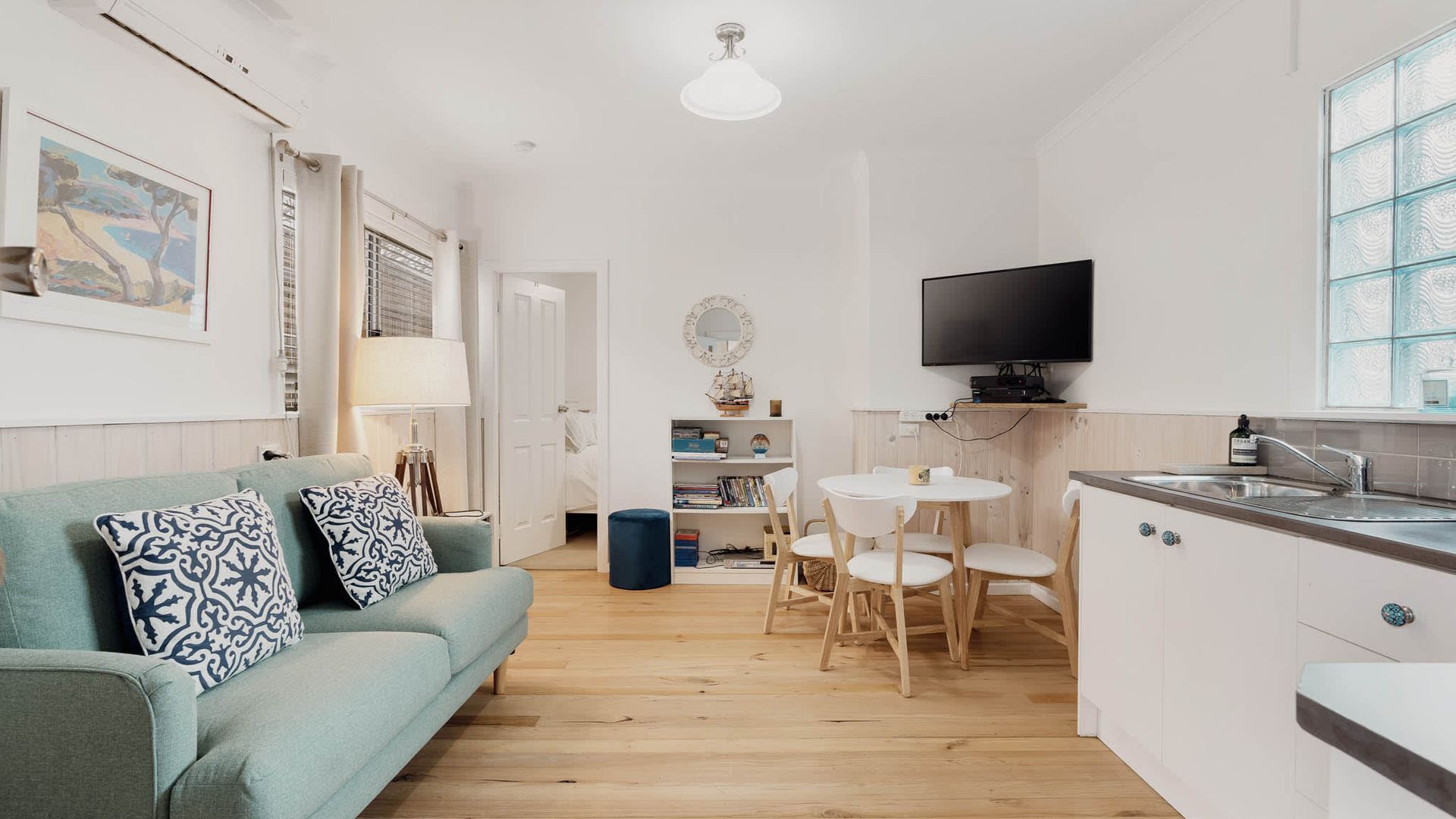 Cute and cozy self contained flat. Centrally located in the picturesque Patonga Beach village. Beach access across the road, creek access at the other end of the street. An easy, flat walk to The Boathouse Restaurant and Pub either strolling along the beach or on the road. Perfect for a couples weekend away.
