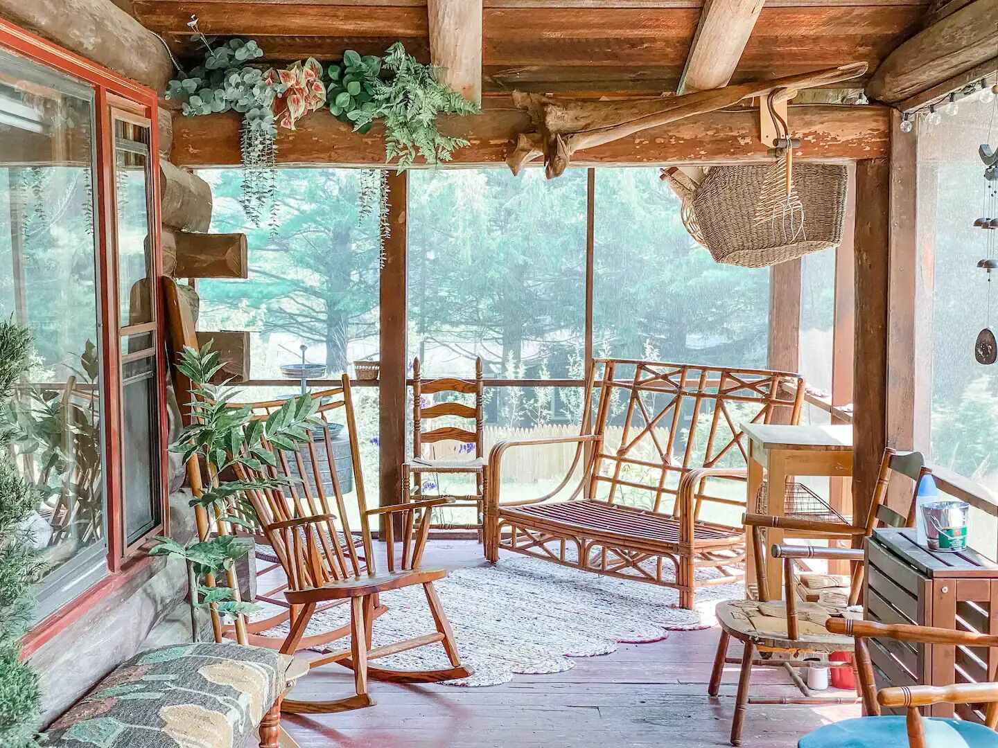 - Porch: Enjoy two chairs, a table, lounge chairs, and cold-weather blankets for the fire pit, along with a fire pit bag containing a starter, flashlight, and bug spray.