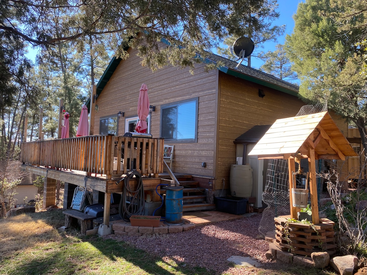Admire the forest view (with friendly and clean neighborhood) with our expansive, wrap-around deck. You’ll spot elk, deer, birds and other remarkable Arizona wildlife. Or simply sit back and relax in the shade of the comfy sunporch. Its a great space for hanging out with friends and family.