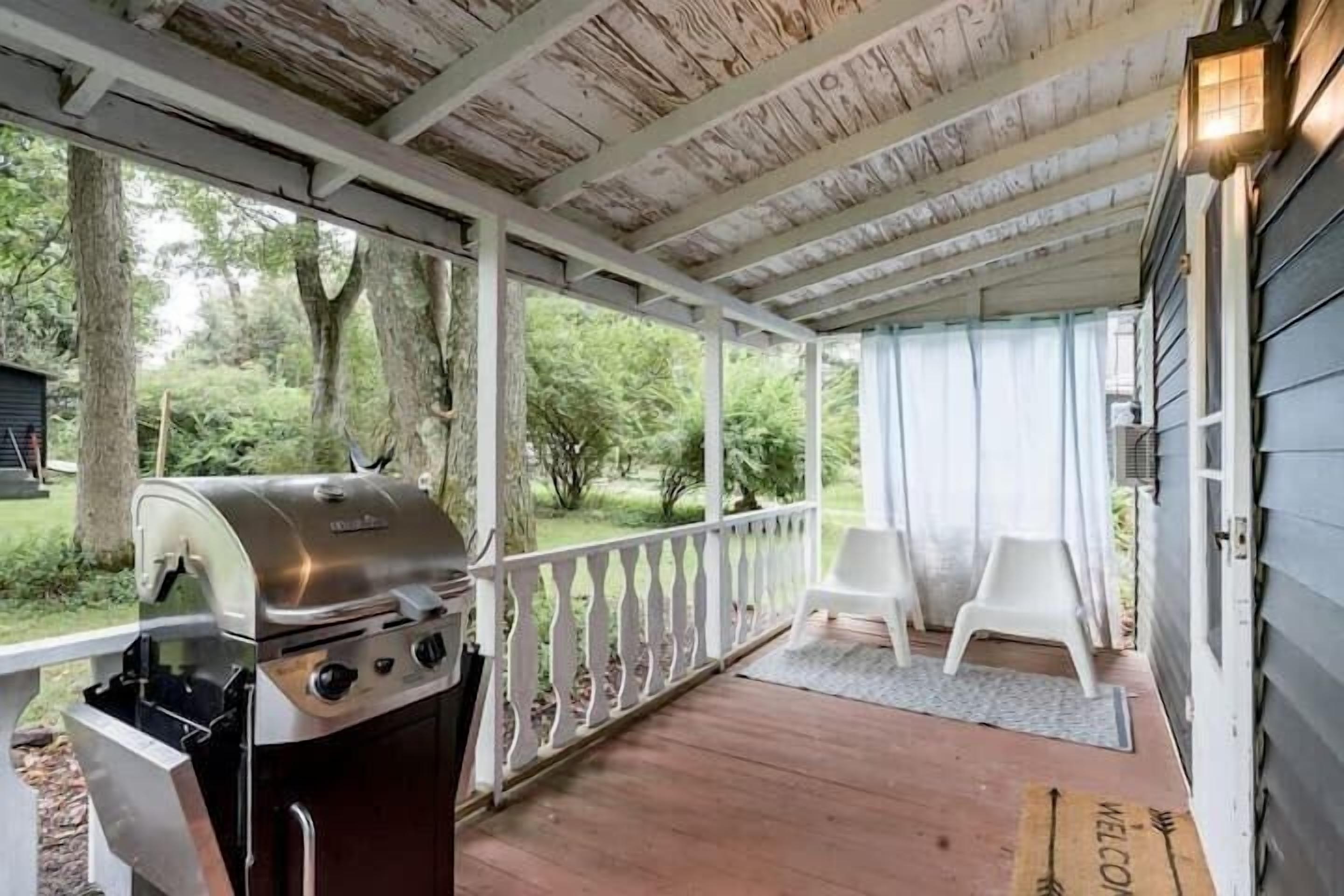 Outside you can enjoy hammocks, a fire pit, and a gas grill on the nearly acre corner lot. And, we’re not just pet-friendly, we’re pet-welcoming! Our dogs, Stella and Fiona, go where we go, and our vacations wouldn’t feel the same without them. We know it can be stressful traveling with pets, so we’ve thought of everything you’ll need to help your furry friend enjoy their stay as well! We have a crate, pet bedding, bowls, chew toys and a sturdy tie-out to use while you’re hanging by the fire pit outdoors.