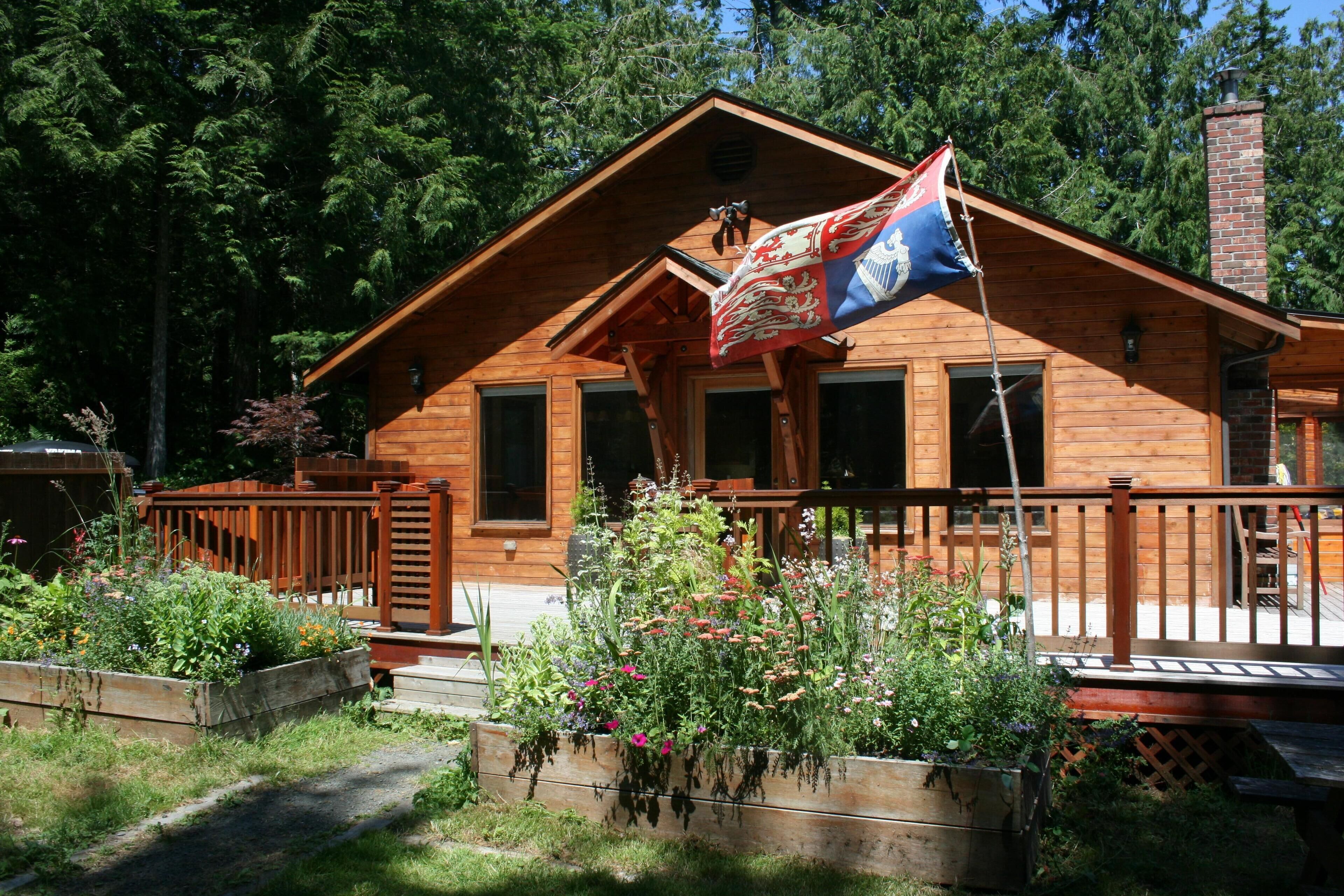 Landhaus Quilcene is a very private gated residence situated on 15 acres (6 hectares) of forest land. The property features the main 2 bedroom, 1 bath cedar home (1,064 sq ft/99 m2) with fully screened covered sun porch and wrap-around deck, and 2 adjacent cozy guest cabins. (Max 8 people). A private hiking trail loops its way through the property and offers guests a convenient choice for exercising, walking their dog, or just a relaxing walk to observe the wildlife in the forest. Distant from any traffic noise, a more relaxing time would be hard to find. The ideal setting for a relaxing weekend away from the stress of life in the city or as a base camp to explore the beautiful hiking paths and mountains of the Olympic National Forest.