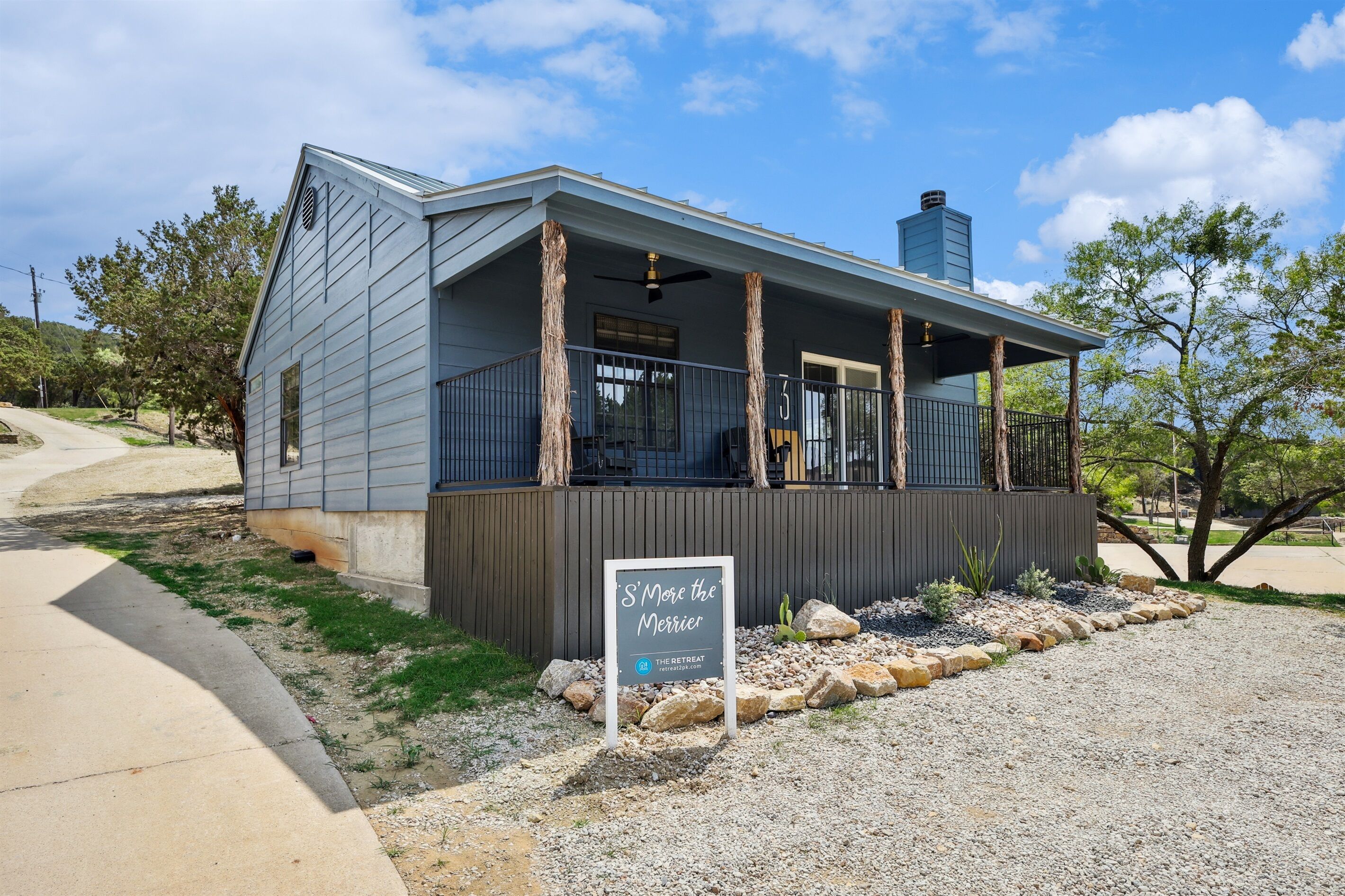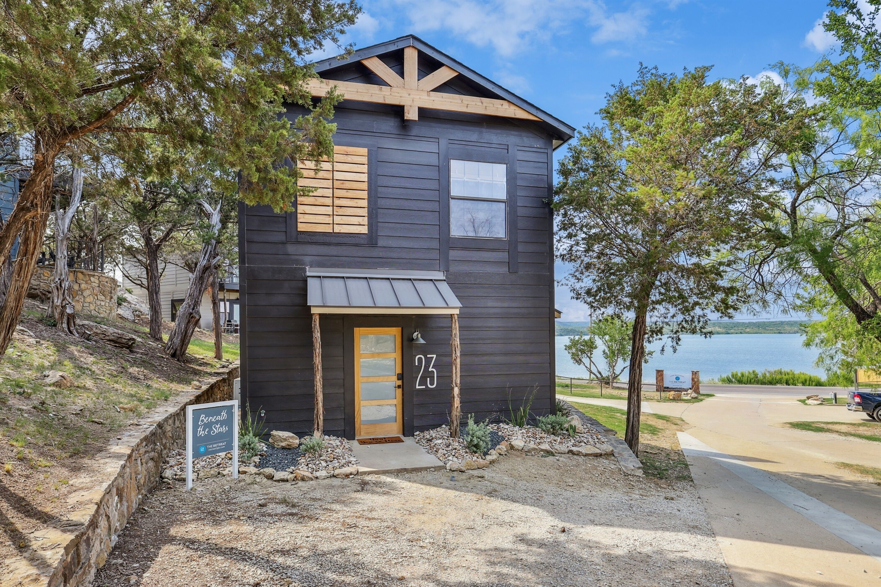 The Retreat at Possum Kingdom Lake! Situated just across the street from the lake, and a short drive to the restaurants and stores. This adorable 2-bedroom, 1-bathroom vacation rental sleeps 7 people and has all essentials (free WiFi, a Smart TV, and a full kitchen). Wake up with a cup of coffee and enjoy the lake view from your porch. After a day on the water, you can grab dinner at a local restaurant before you unwind inside by the fireplace or outside by the firepit.