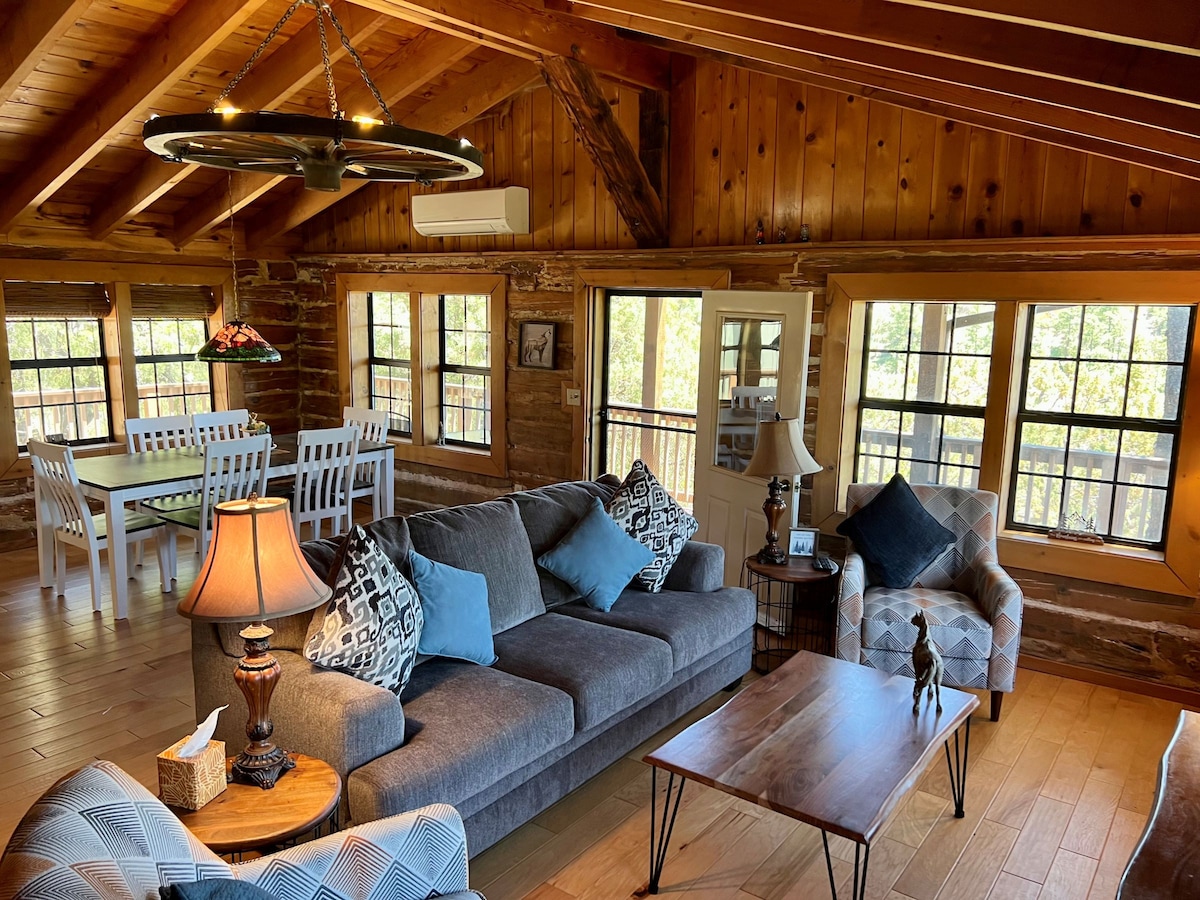 You'll love the interior of this 1 bedroom (Queen-size bed), 1 bathroom (large shower) log cabin with log walls, log ceiling beams and hardwood floors throughout.