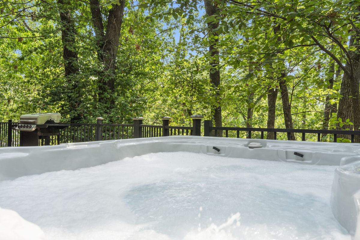 Located minutes from Thunder Ridge Arena, Table Rock Lake, Big Cedar Lodge, Top of the Rock and 10 minutes from Branson! We have a private hot tub out back and a pool a short walk from the front door. Our cabin is decorated with cozy, rustic furnishings and carefully chosen antiques, we have created a homey warmth for you to fully enjoy your stay in our “home away from home."