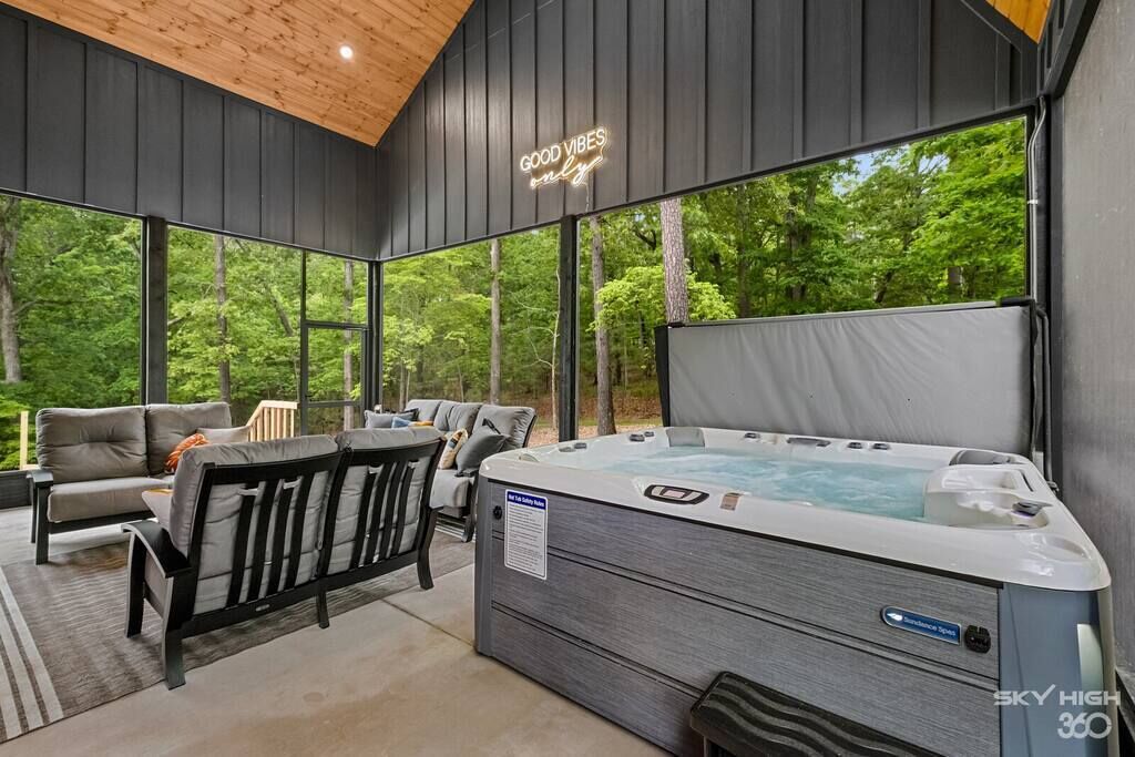 Heart Haven is located in the heart of the Ozarks, just minutes away from Hobbs State Park, War Eagle Cavern, War Eagle Mill, and endless hikes, bike trails, and adventures with a plethora of on site amenities and things to do like paddle boarding, hiking, lake access, shipping container pool on the deck, hot tub, sauna, and even a lakeside amphitheater.