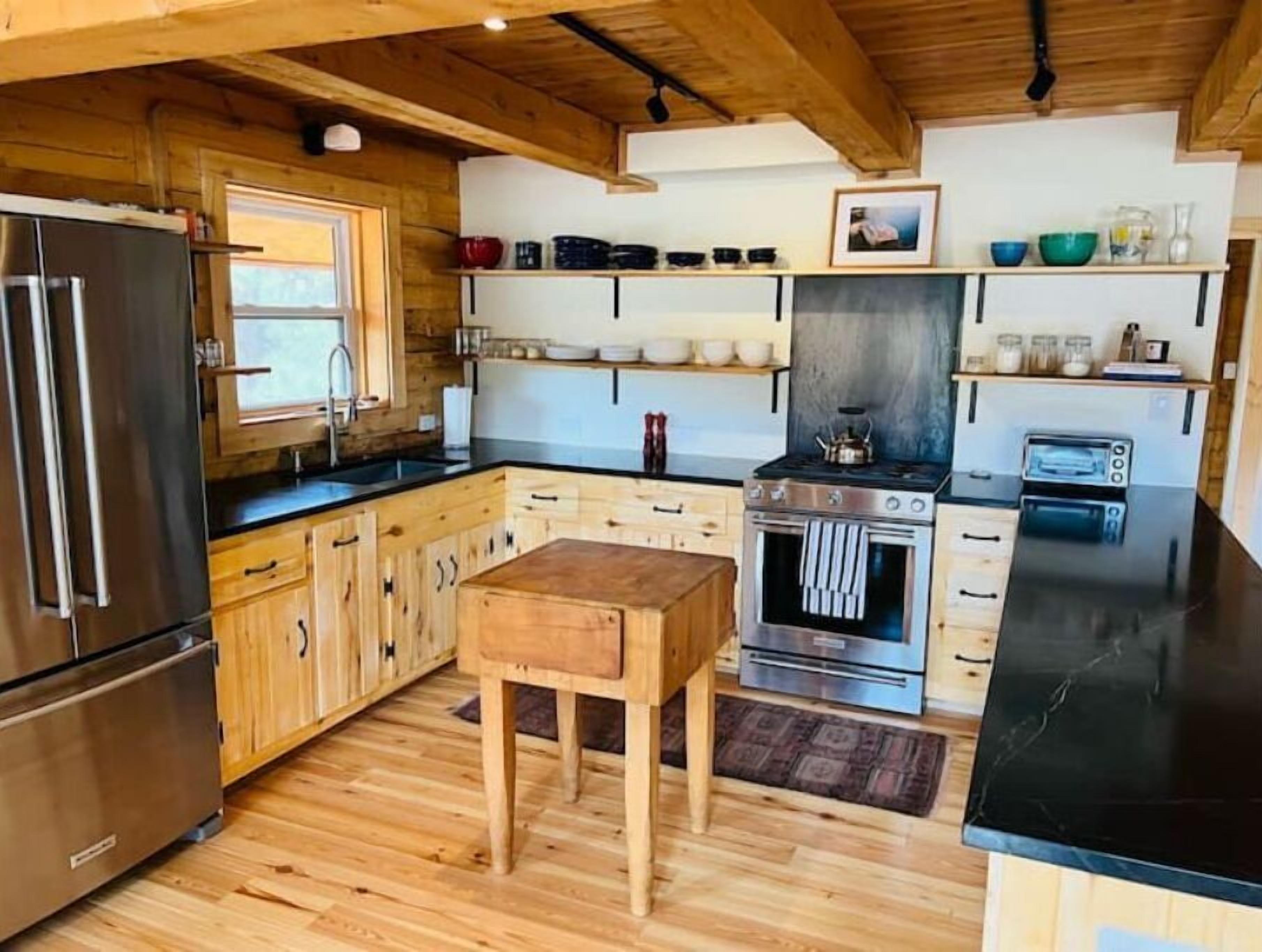 Inside, you’ll find one king bed, two queens, and a single bunk bed-ideal for couples, families, or small groups. Curl up in the cozy book nook, gather around for games, or head outside to take in the stillness and stars. A telescope is available to help you explore the Milky Way on clear nights, which are frequent!