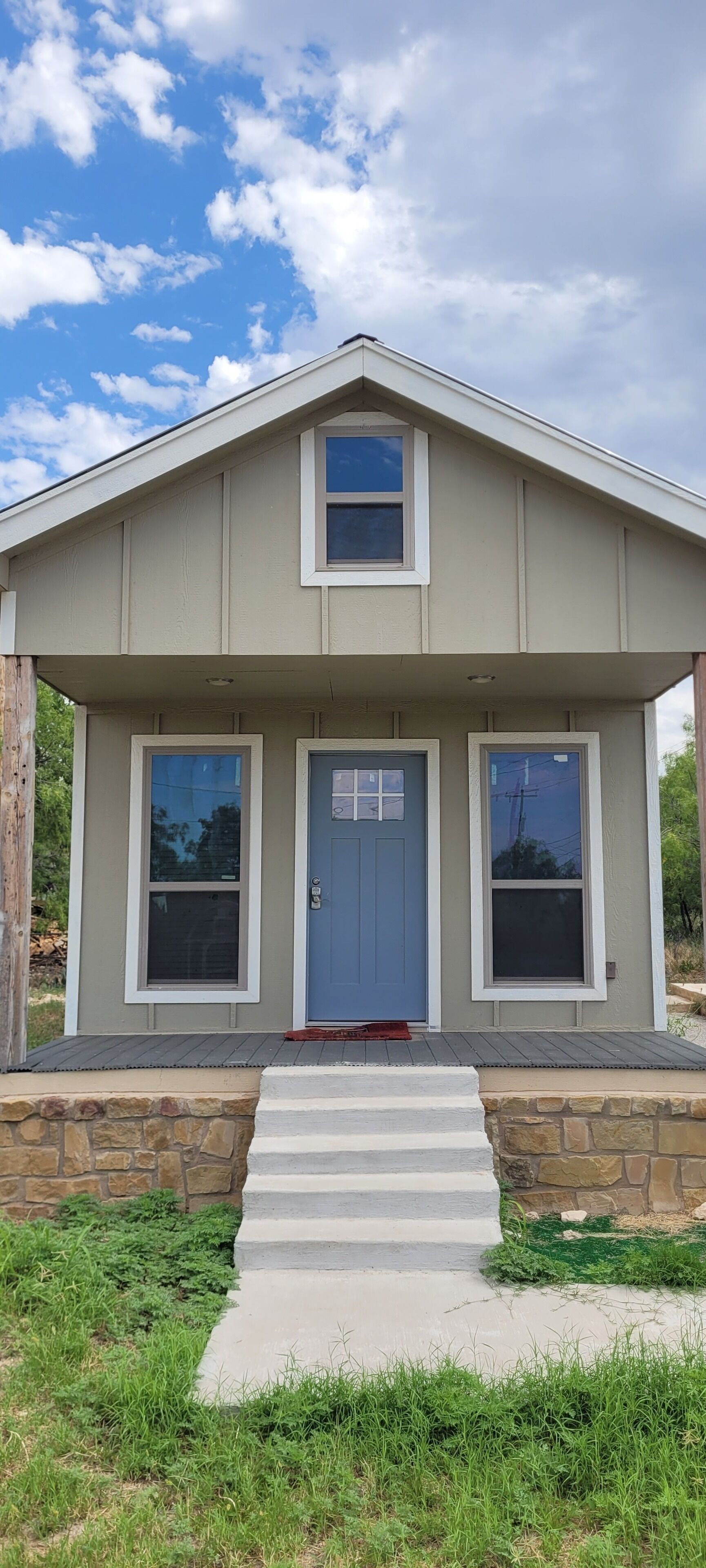 This newly constructed cabin is furnished with everything that you need for a short get a way. This tiny home features a great place to rest and relax. Located within walking distance to the San Angelo State Supported Living Center and a 20 minute drive to historic San Angelo. Do you have an event at the Star Ranch? If so, this is less than five minutes away. There is one bedroom and one bathroom and a fully furnished kitchen with a microwave and convection oven along with granite countertops and stainless steel appliances. This property is little but has all the necessities you need! There is a Dollar General and a family owned restaurant just down the road.