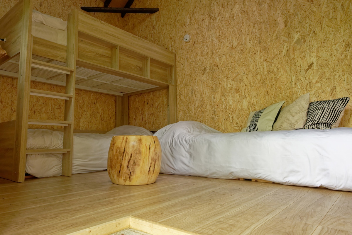 It can accommodate up to 3 people with bunk beds and an extra bed.