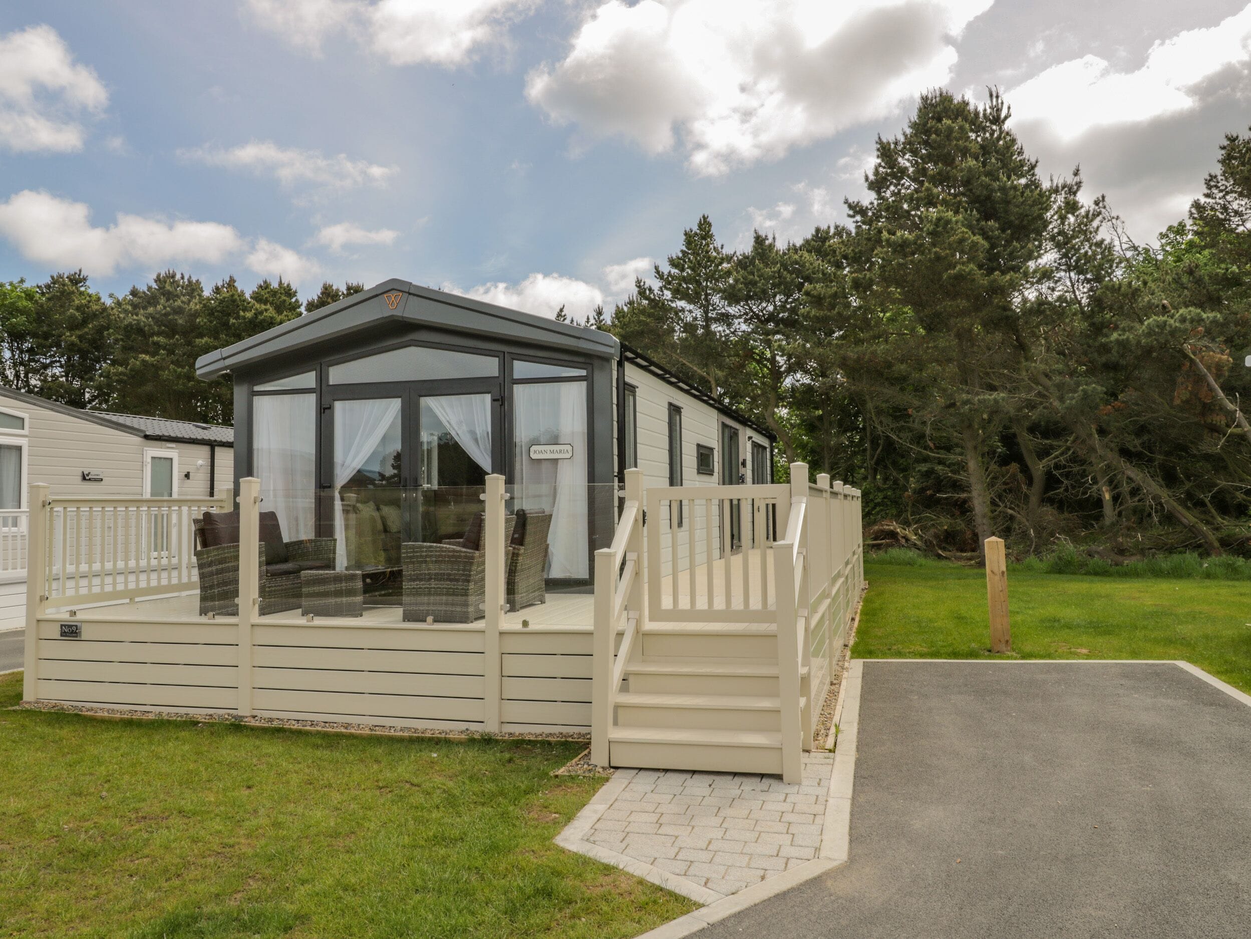 Guests have full access to the entire lodge, including all bedrooms, the modern kitchen, and the comfortable sitting room with smart TV and WiFi. Enjoy the large balcony with outdoor seating, swinging chair, and hammock. You can also use the wrap-around decking area, which features a child- and pet-safe gate. The lodge is equipped for your convenience and relaxation throughout your stay.