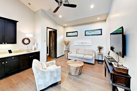 Just featured on CBS' series "STAYCATION," these Uber-unique Eco-cabins are a favorite on our Magical retreat property on Lake Travis. ON-SITE Kayaks, Paddleboards, and Canoes, & Stonehouse Vineyard WINERY ACROSS THE STREET! Krause Springs spring-fed swimming hole is also just a short drive down the road. Bonus: we offer our guests private Yoga, Massages, Personal Training, and mobile facials. These Eco-cabins can sleep up to 8 people. 1 full-size bed in loft, 2 bunks, 1 full-size sofa-bed.
