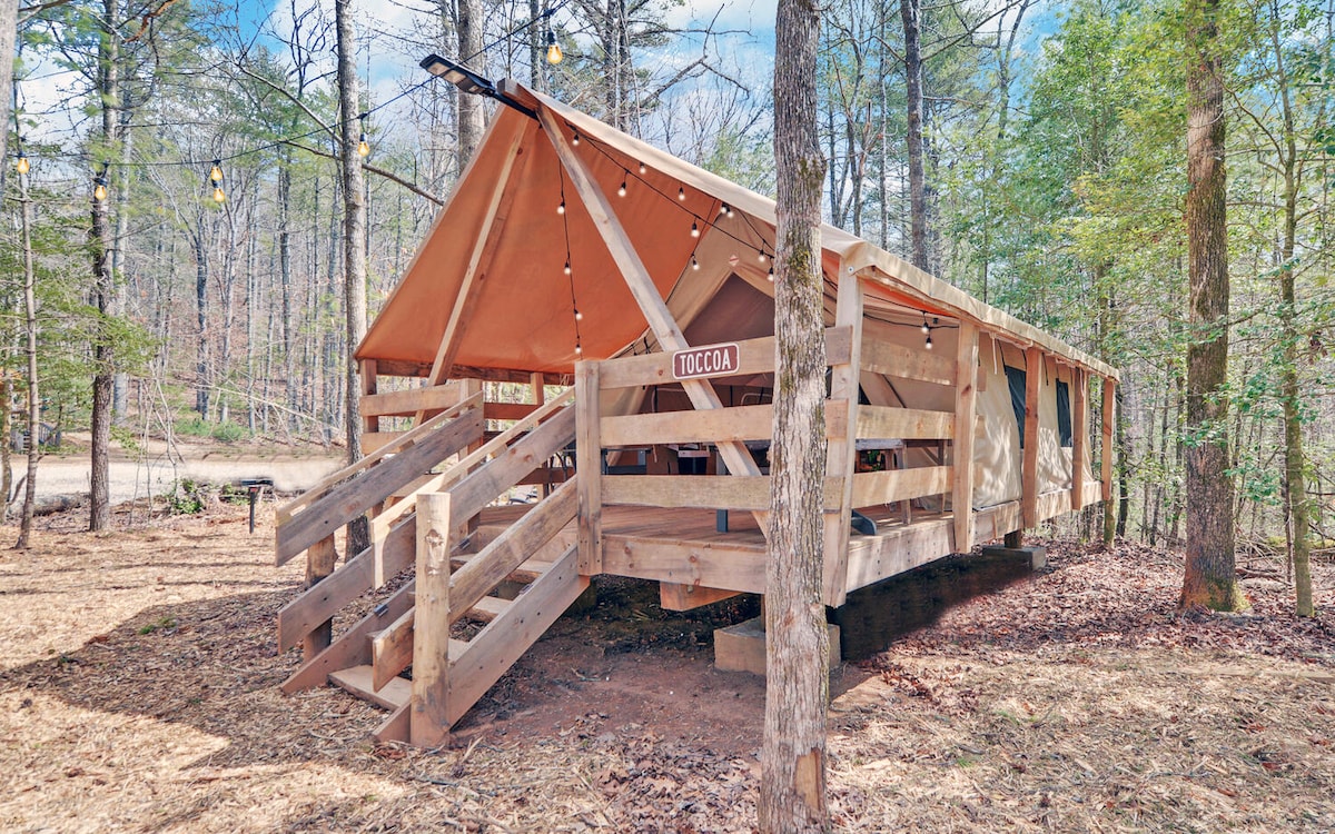 Postcard Cabins Chattahoochee provides accommodations in Suches. There's a private entrance at the campground for the convenience of those who stay. Outdoor seating is also available at the campground. The air-conditioned units have a fully equipped kitchenette with a fridge and a stovetop. The campground offers some units with mountain views, and the units have a patio. The rooms are equipped with heating facilities. Hartsfield–Jackson Atlanta International Airport is 93 miles from the property.