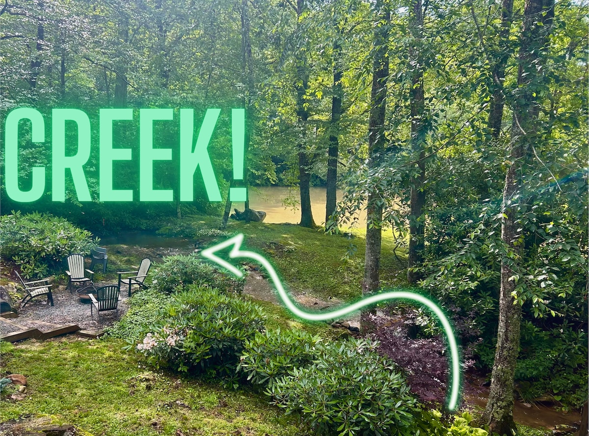 Two-story 5 bedroom chalet nestled in the serene forest next to your very own babbling creek and pond.